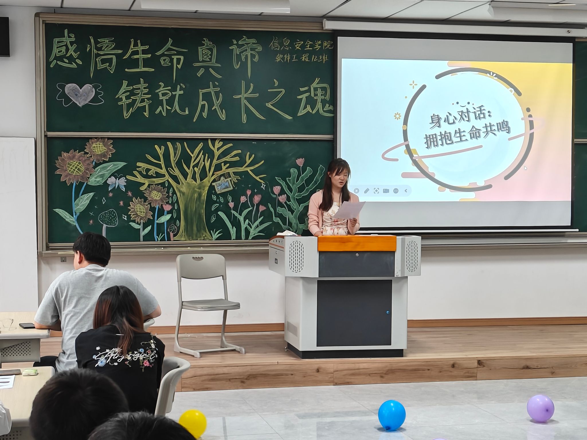 为引导学生深入理解生命的内涵与价值,让学生认识身体各器官与心理状态的紧密联系,2023级软件工程12班于5月16日行者楼102教室,开展“感悟生命真谛,铸就成长之魂。”为主题的心理班会。该班会通过"五感沉浸、三维互动"的创新模式,让同学们深入思考生命意义,重视身理与心理的结合,培养对生命的敬畏与热爱。