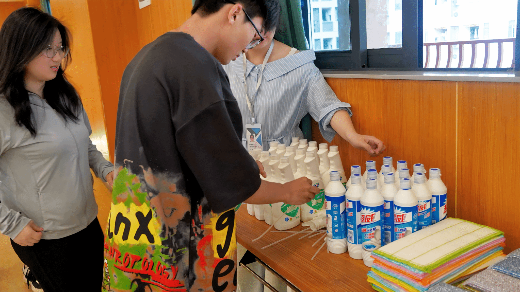 活动临近尾声,现场依旧洋溢着温馨而热烈的氛围。工作人员为参与者发放了清洁工具大礼包,礼包内包含高效去污清洁剂、纤维抹布等实用物品。同学们纷纷表示将把新掌握的清洁技巧与这些工具相结合,在宿舍实践中打造窗明几净的生活空间,让环保理念延伸至日常,用实际行动为文明寝室建设添砖加瓦。
