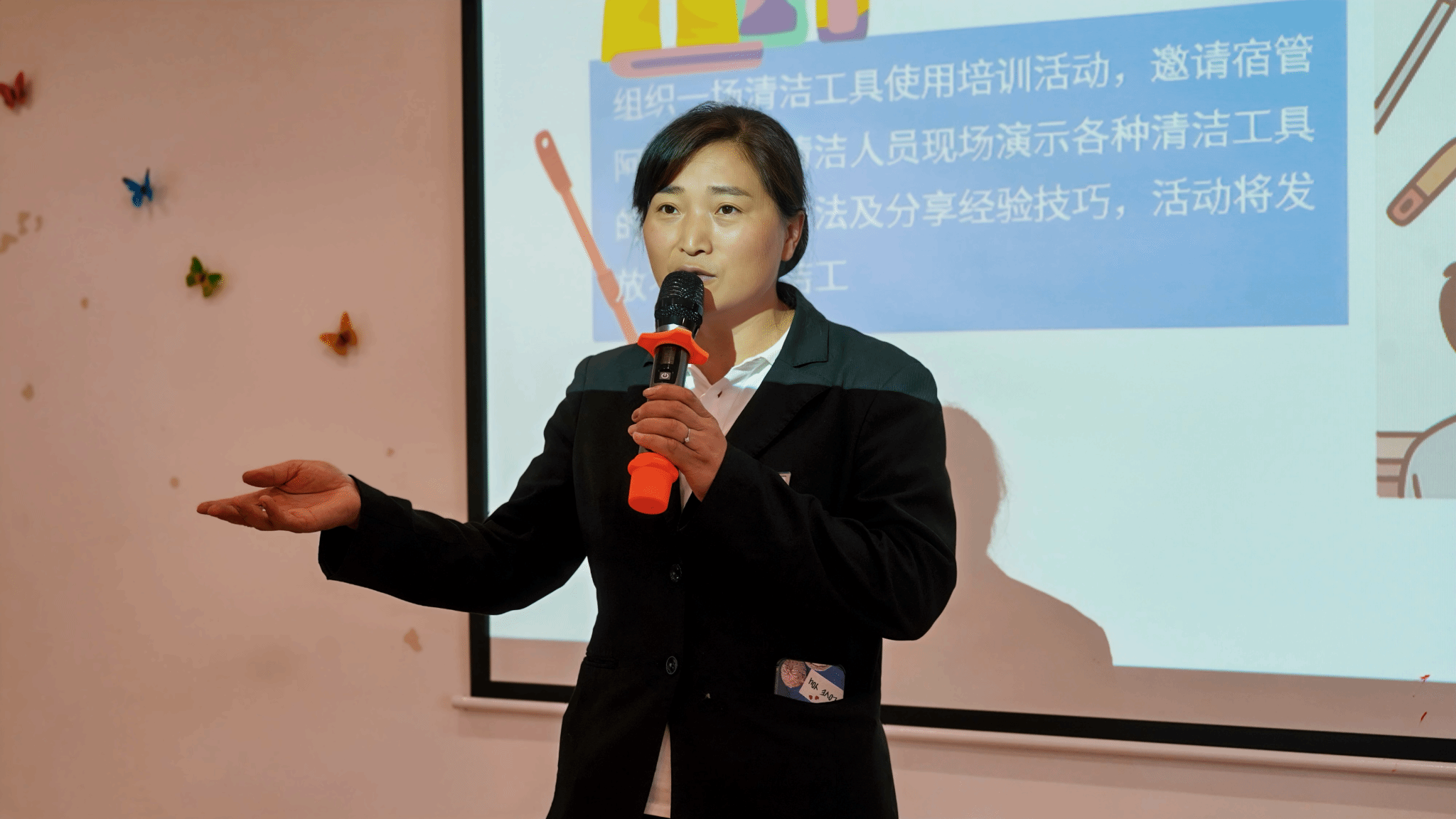 此次活动还特别邀请了南江书院宿管老师廖春燕及工作人员到现场演示各种清洁工具的正确使用方法,并分享她们的经验与技巧。她们通过情景模拟,演示了玻璃清洁“三步法”、地面养护“分区术”等实用技巧。“很多人擦镜子会留下水痕,其实用鱼鳞布做最后收尾就能解决。”宿管阿姨边讲解边示范,引得同学们跃跃欲试,同学们纷纷感慨道:“原来打扫卫生也有如此多的学问!”