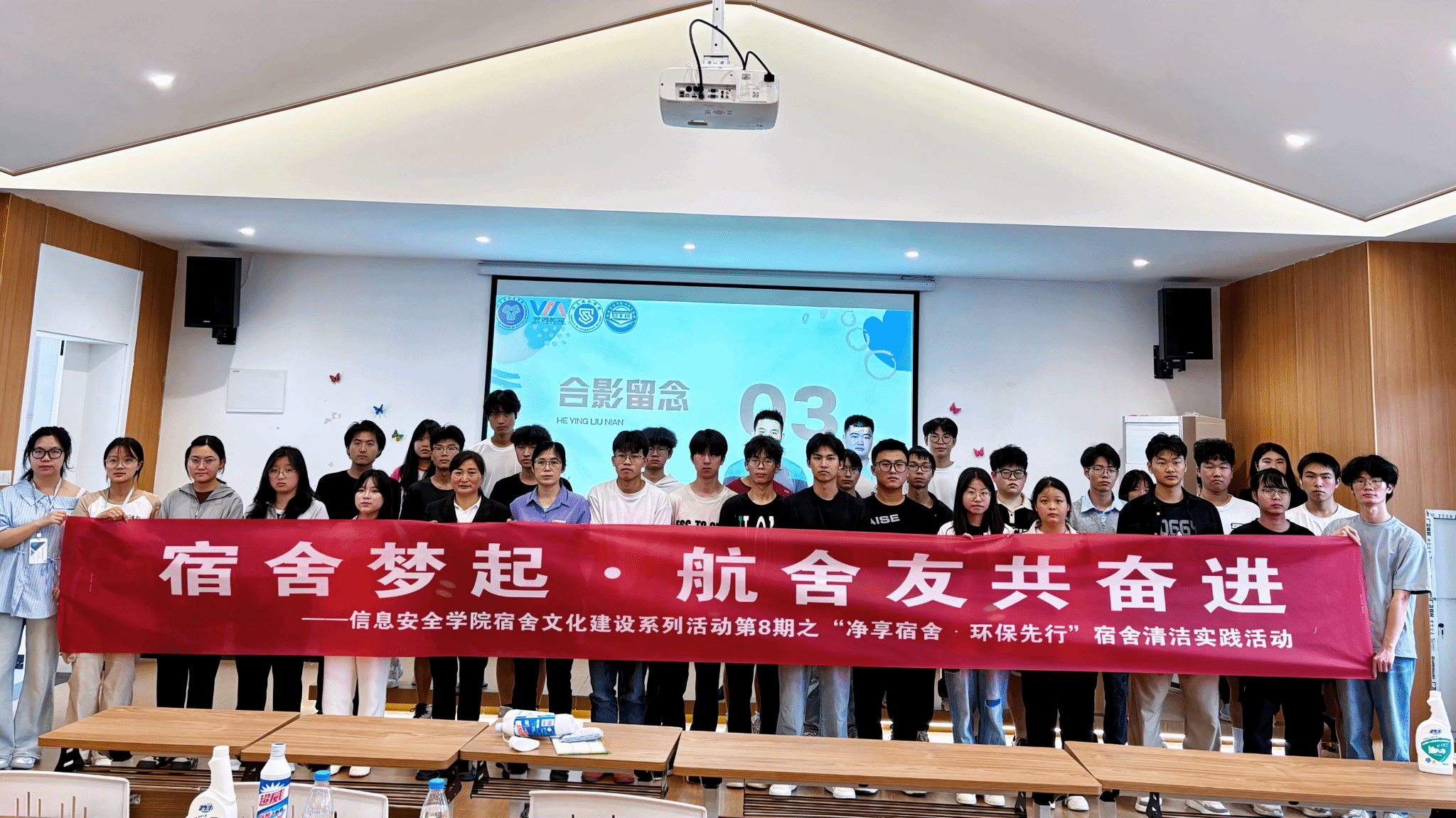 宿舍作为同学们共同的家园,其整洁与美观不仅关系到生活质量,更彰显了当代大学生的文明素养。为增强学生的环保意识与实践能力,信息安全学院书院发展部于2025年5月16日14时至16时在南江书院庸言· 研讨互鉴讲堂举办了信息安全学院宿舍文化建设系列活动第八期——“净享宿舍•环保先行”宿舍清洁实践活动,旨在通过知识宣讲与技能培训的形式,为创建整洁健康的宿舍环境注入新动力。