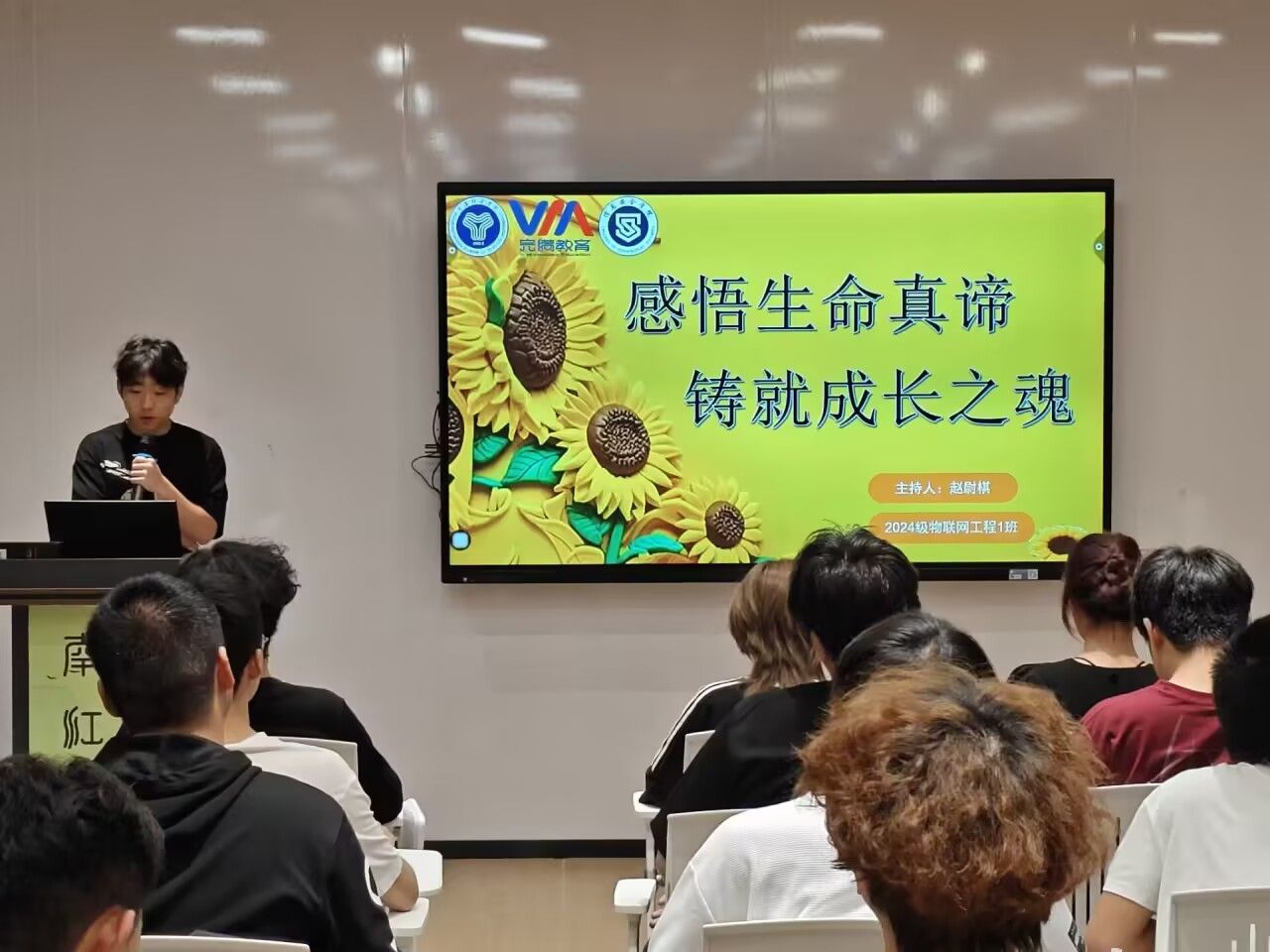 大学生正处于人生发展的关键阶段,学业压力、复杂的社交关系、职业规划的迷茫如影随行,这些挑战构成青年成长路上的现实考验。为了帮助大学生关注自身的心理健康,提高心理调适能力,2025年5月13日,2024级物联网工程1班在南江博学功能室举办了一场以“生命的力量”为主题的班会。同学们积极参与每个环节,在互动中感悟生命真谛,铸就成长之魂。