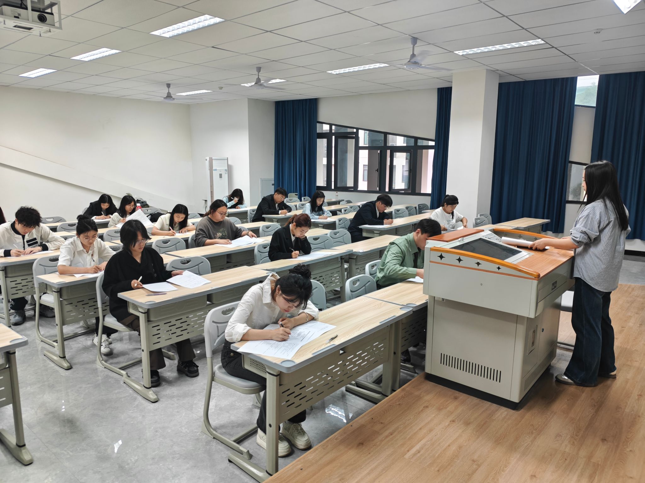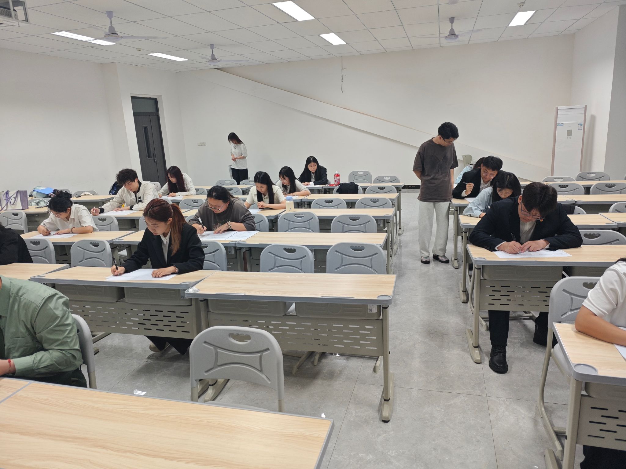 考试环节于当天下午14点30分开始,16名发展对象于贤者楼312参加了此次考试。考试采用闭卷形式,内容涵盖党的二十大精神、党章党规、党史等重要知识,全面检验考生对党的基本理论、基本路线、基本方略的掌握程度。考场内,考生们严格遵守考试纪律,认真审题作答,展现出良好的精神风貌和扎实的理论素养。