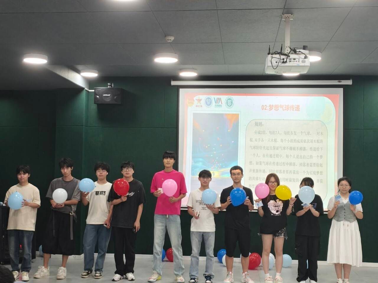 “梦想气球传递”妙趣横生,同学们手持木棍传气球,并在传递过程中分享自我梦想,气球掉落者则需要说出自己为实现梦想所付诸的行动。现场同学们的梦想精彩纷呈,通过这一环节助力大家明晰未来规划,培养团队默契,激发逐梦斗志。