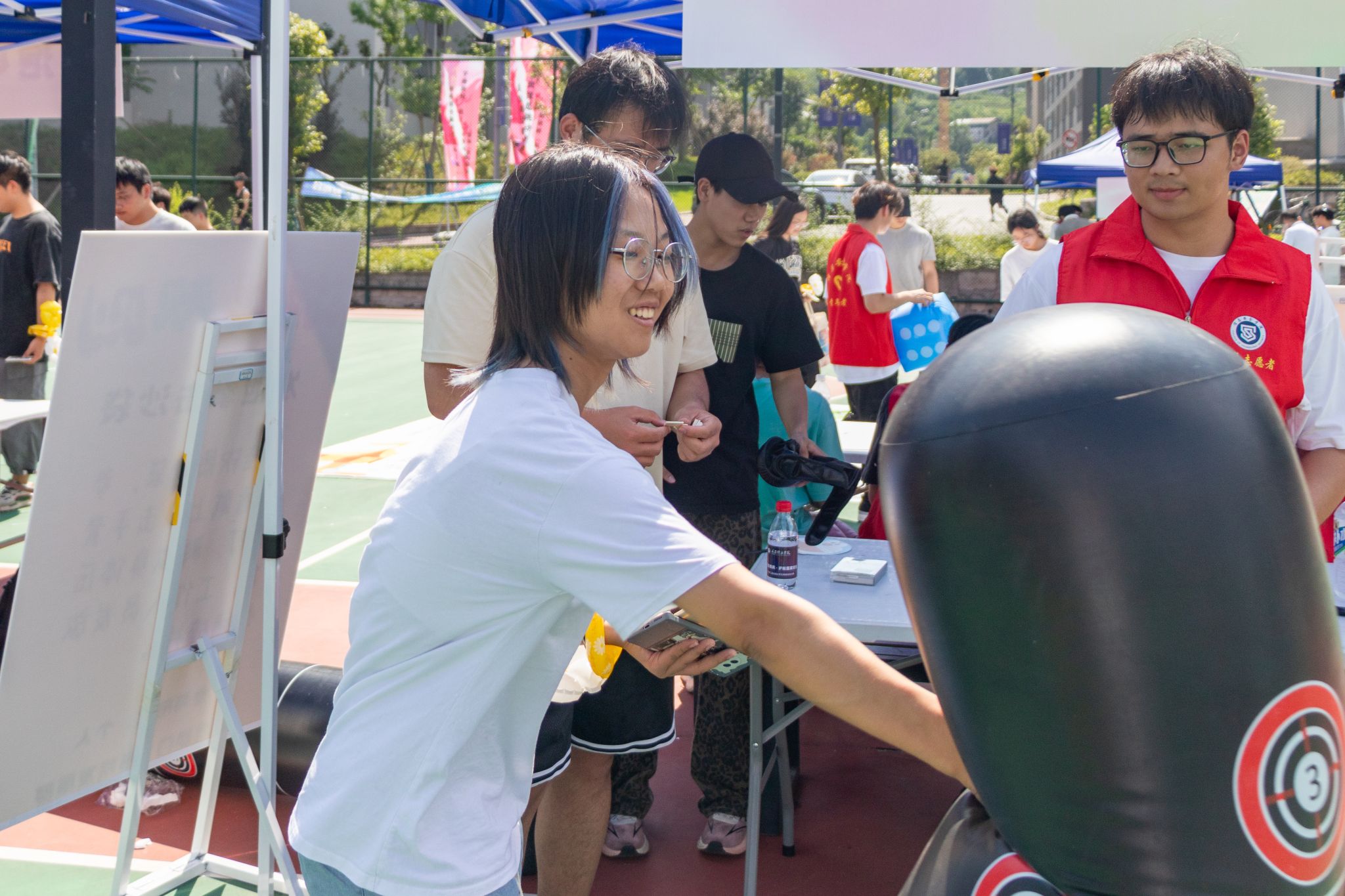 活动以“玩转当下,悦纳自我”为核心,打造了八大主题游戏区,将心理健康知识融入互动体验。参与者通过“发泄拳击沙袋”击退压力、“解压保龄球”击倒焦虑标签、“扎爆烦恼”飞镖挑战等趣味环节,收获情绪碎片;在“心灵飞行棋”团队协作中探索心理议题,通过“压力绘画墙”将情绪转化为艺术作品。活动全程贯穿“情绪碎片收集”机制,参与者集齐碎片后可兑换奖品,并以个人名义将奖励捐赠至贫困山区,实现“解压”与“公益”的双向奔赴。
