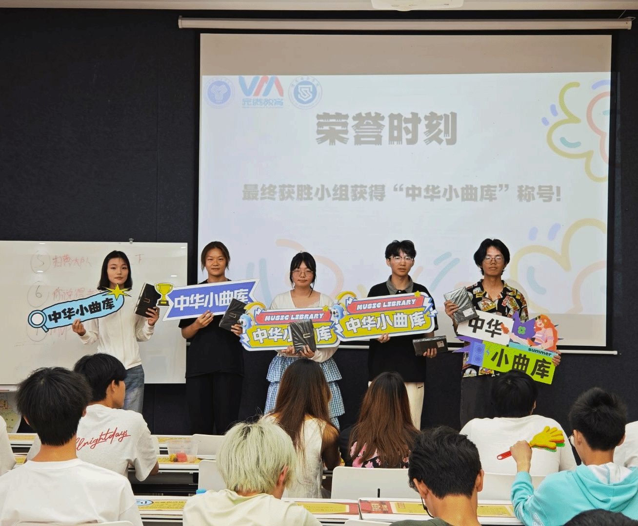 在核心竞技环节“听歌猜名与接唱”环节中,各小组需根据歌曲前奏竞猜歌名并接唱正确歌词。活动设置多元曲库,涵盖经典老歌、流行热曲与国风新作,既考验音乐储备,也激发团队协作。在猜歌环节现场热闹非常。前奏刚一奏响,众人便齐刷刷安静下来,个个屏气凝神,大脑飞速检索记忆里的歌名。当有人抢答成功,他们相互拥抱、击掌,分享着胜利的喜悦,抢答者则昂首挺胸,脸上满是得意与自豪。整个过程中,笑声、掌声交织不断,所有人都沉浸在这场充满趣味与挑战的音乐竞技里。