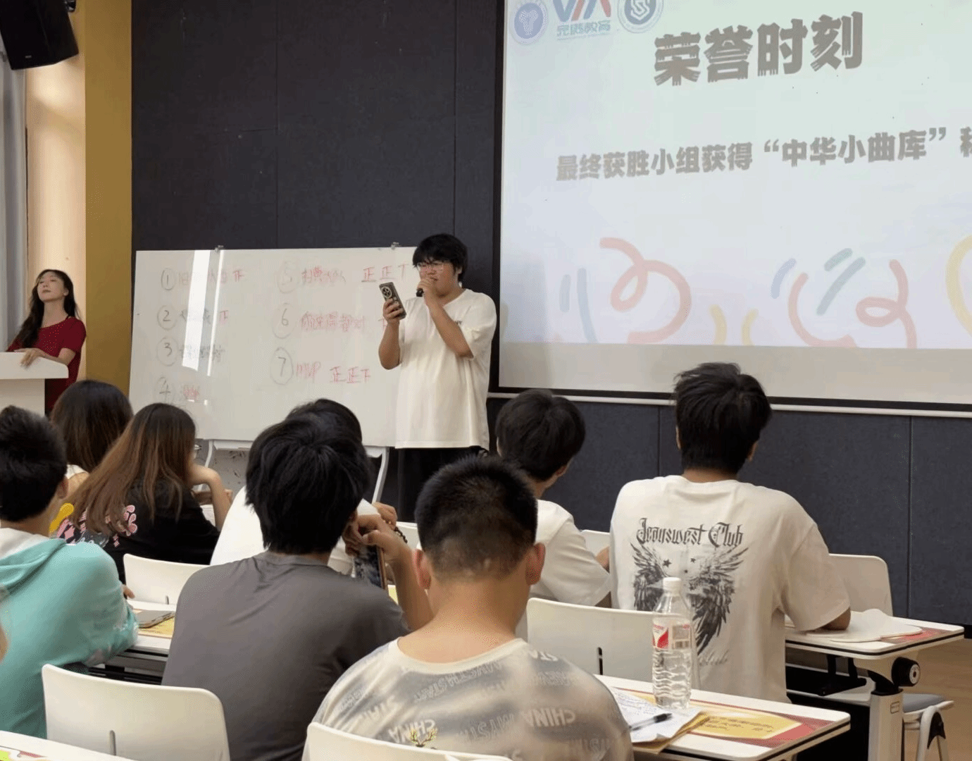 音乐知识竞答环节将活动推向了新的高度。题目内容丰富多样,涵盖了乐理常识、音乐史以及创作技术等多个维度。不同学科背景的队员充分发挥专业优势,在历史背景解析、艺术概念阐释与表达中互补协作。对于那些连续答错的小组,他们并没有气馁,而是通过合唱表演来活跃现场气氛,将原本紧张的竞技氛围巧妙地转化为集体参与的欢乐体验。