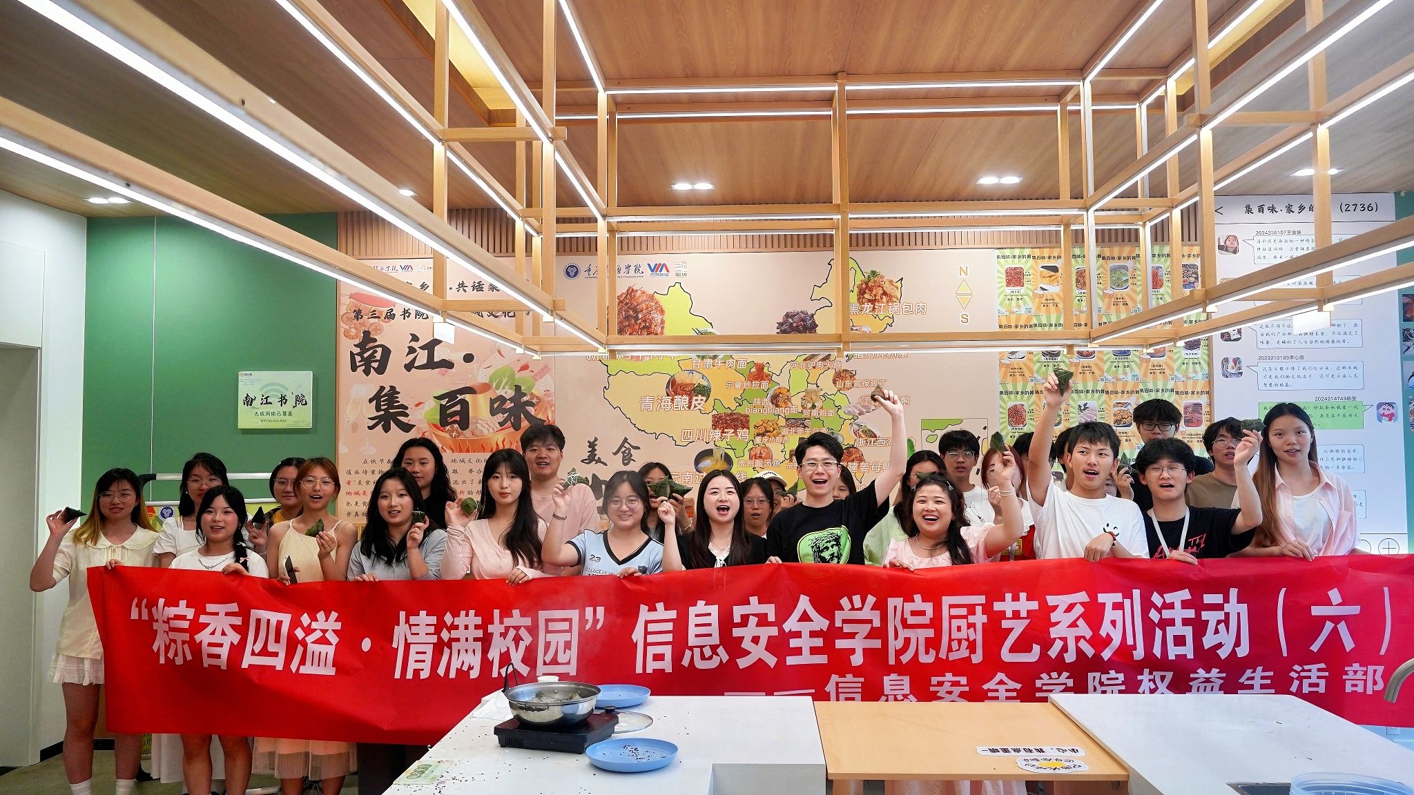 2025年5月23日,南江书院笃行•生活共享厨房内热闹非凡,信息安全学院学生会权益生活部以“粽香四溢·情满校园”为主题,打造了一场“可尝、可学、可创”的沉浸式端午文化体验活动,让传统习俗在青年指尖焕发新生机。