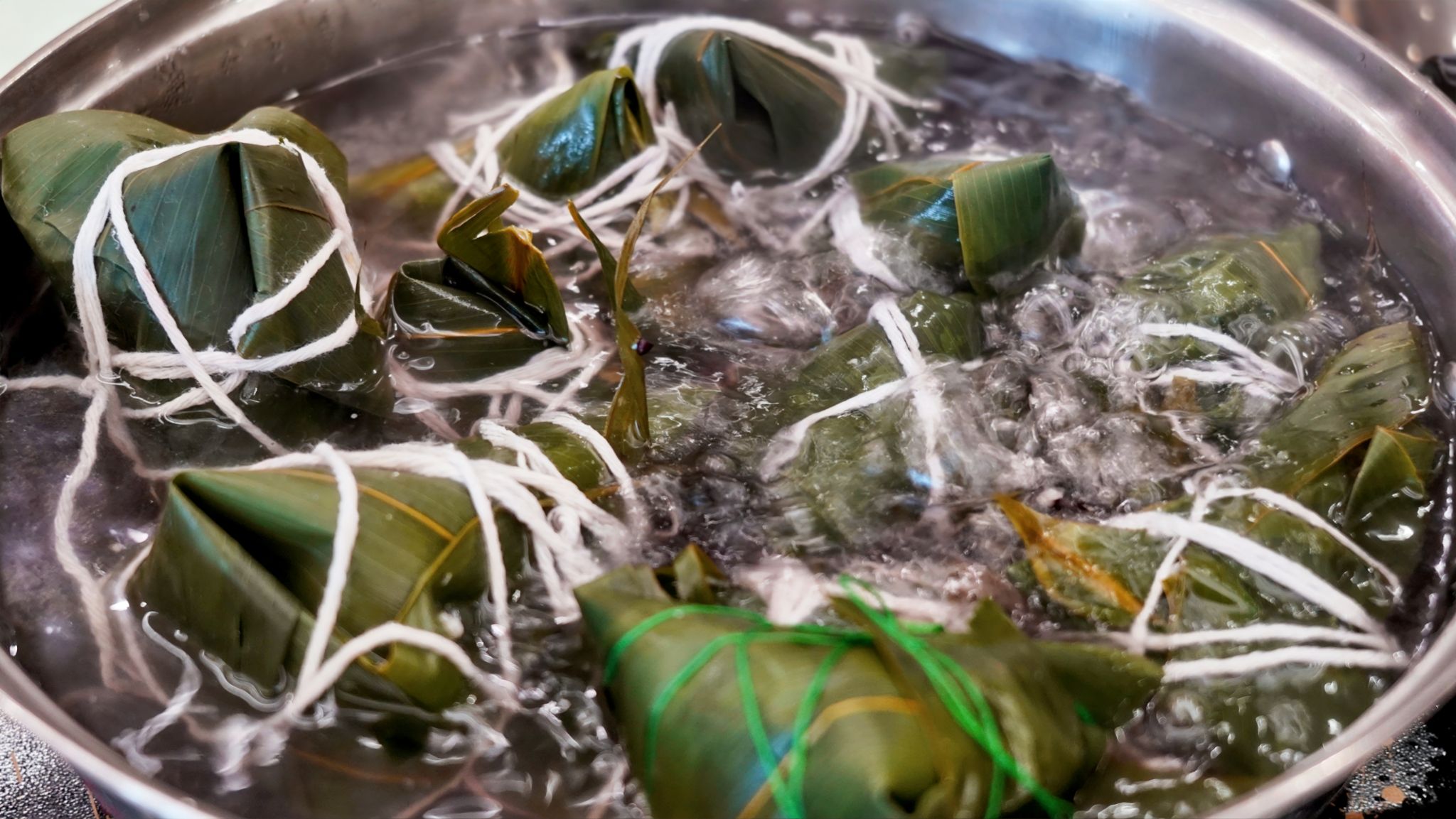 最令人期待的煮粽子环节到了,同学们将包好的粽子小心翼翼地放入锅中,添水、开火,眼神中满是期待。随着锅中的水开始翻滚,淡淡的粽叶清香和馅料的诱人香气逐渐弥漫开来,萦绕在厨房的每一个角落。大家围在锅边,眼睛紧紧盯着锅中的粽子,时不时凑近闻一闻那愈发浓郁的香气。