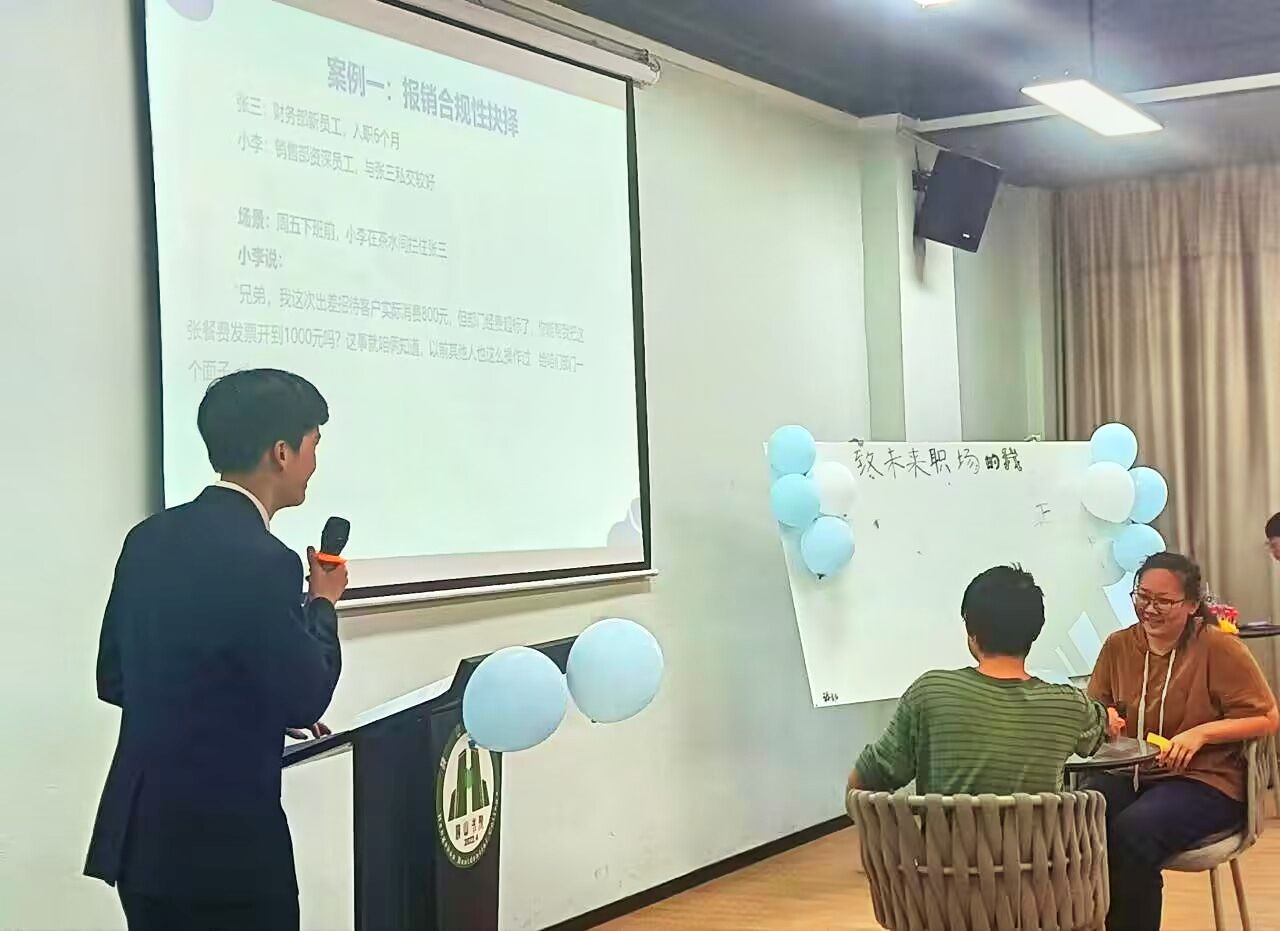 为提升学生应对复杂职场环境的能力,“职场道德与责任挑战赛”环节将年级会推向了高潮。同学们通过抽取“角色身份卡”(如员工、主管、客户)和“职场困境卡”(如“发现同事篡改报销单”“客户暗示给予回扣以签大单”“面临数据隐私泄漏风险”等),迅速进入角色。在有限的时间内,各小组集思广益,制定应对策略,并进行了精彩的情景模拟表演。表演结束后,各组代表阐述了方案背后的逻辑、价值观与法律考量。辅导员针对各组表现进行了细致点评,肯定了同学们在压力下坚守原则的尝试,并引导全体同学就如何在真实职场中建立自我监督与团队互助机制展开了深入探讨。