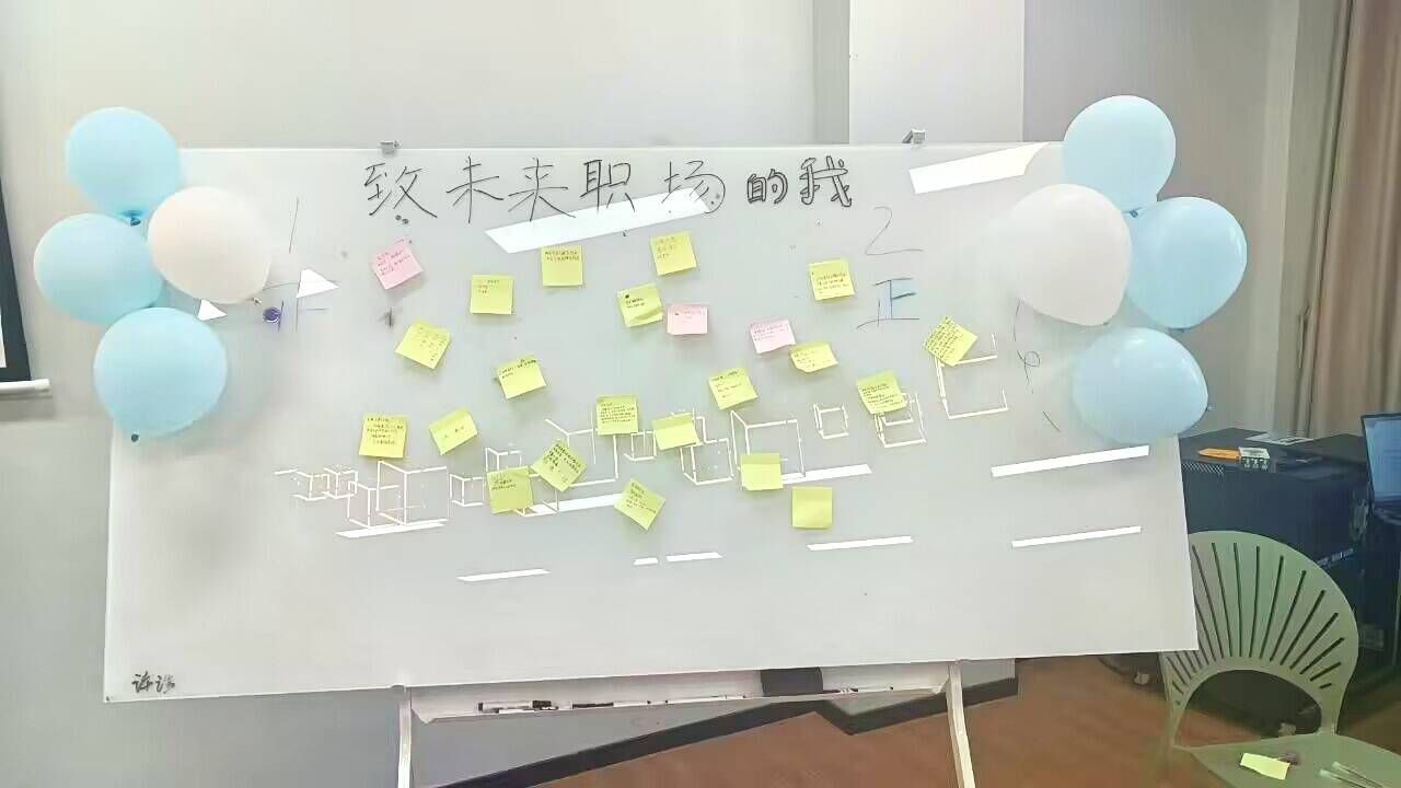 同学们首先根据屏幕上展示的“职场道德自查问卷”,对自身在责任、诚信、沟通和协作等方面的表现进行了认真评估。随后,每位同学都在便利贴上郑重撰写了《致未来职场的我》承诺信,明确了未来的职业目标以及在学术诚信与职场责任方面的三条具体承诺和可落地的行动计划。一张张写满真诚与决心的承诺便利贴被张贴在特设的“职业素养墙”上,形成了班级共同的道德契约与监督氛围。