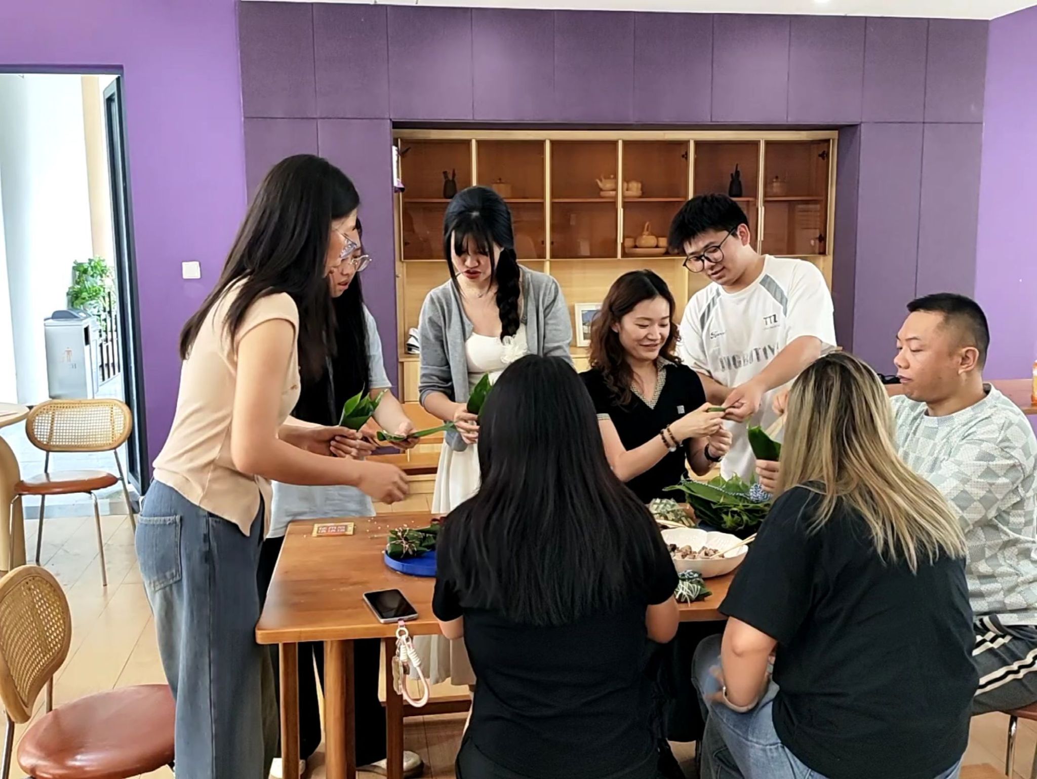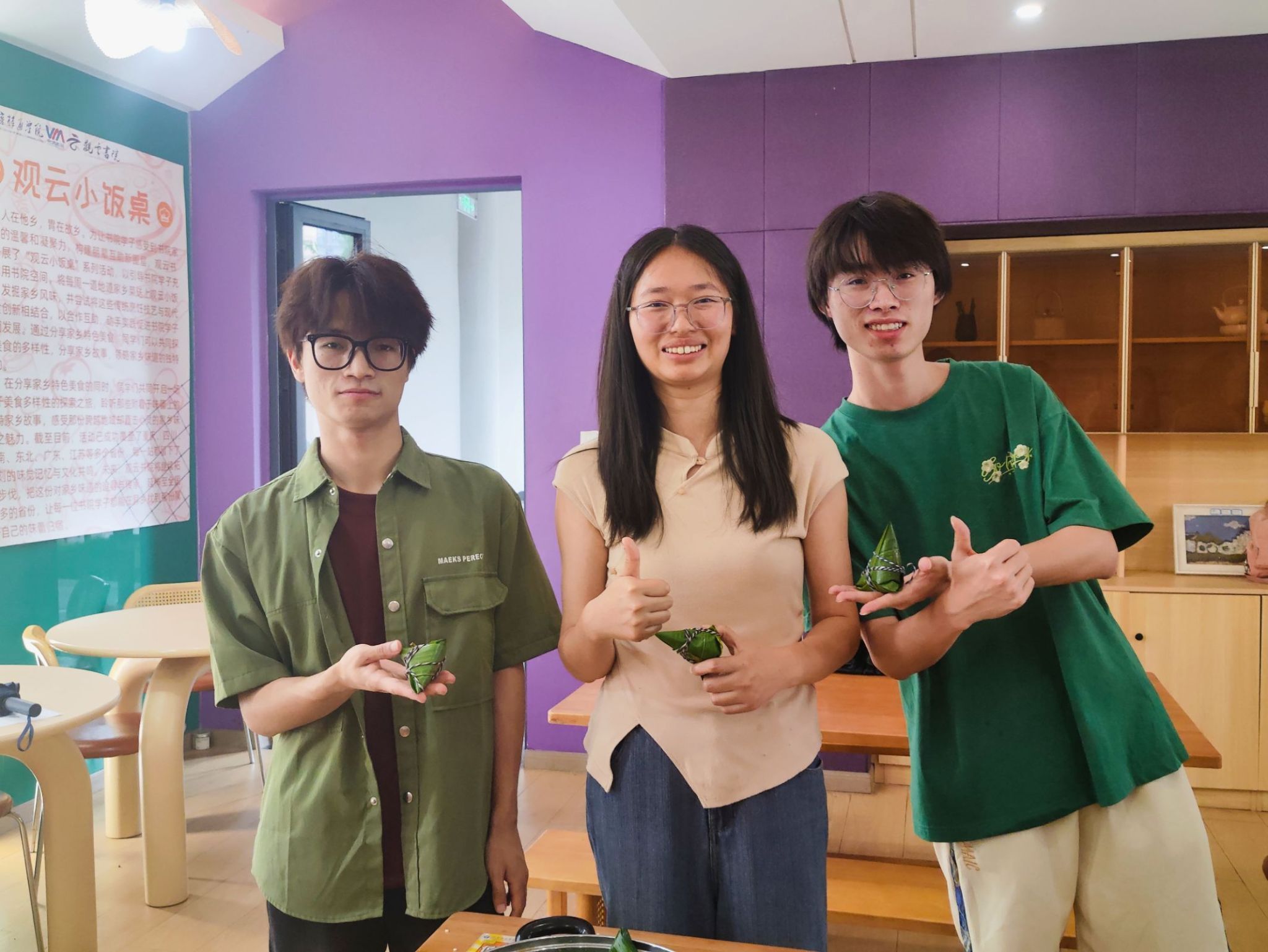粽叶飘香,情满端午。在一年一度的端午节即将来临之际,为传承和弘扬中华民族优秀传统文化,增进师生凝聚力,丰富师生的精神文化生活,2025年5月22日,由异科导师程希、胡戈立、刘必瑜与王妮举办的包粽子大赛于观云书院——谷雨·共享厨房圆满举行,物联网工程8班与网络工程3班的同学积极参与,让活动现场热闹非凡,弥漫着粽叶的清香。