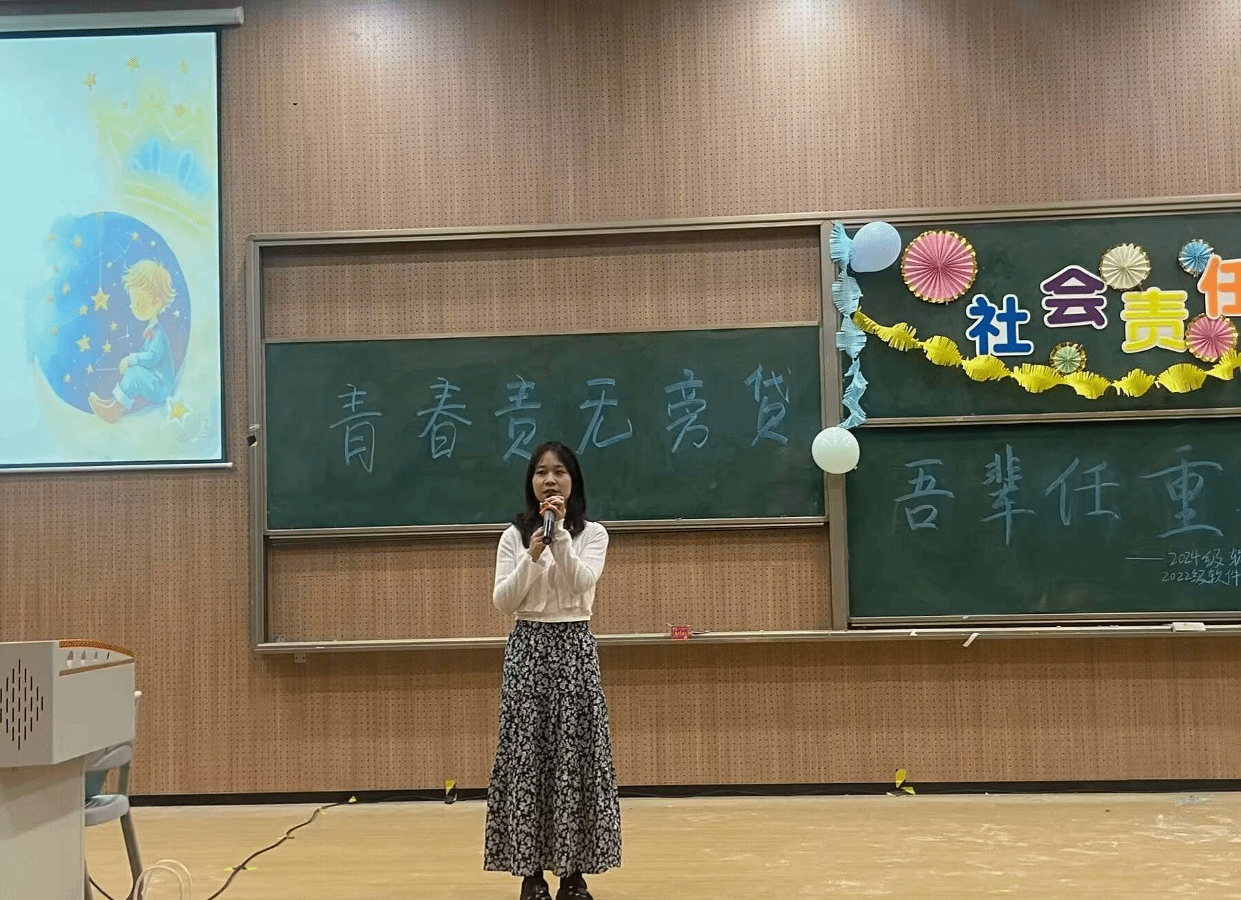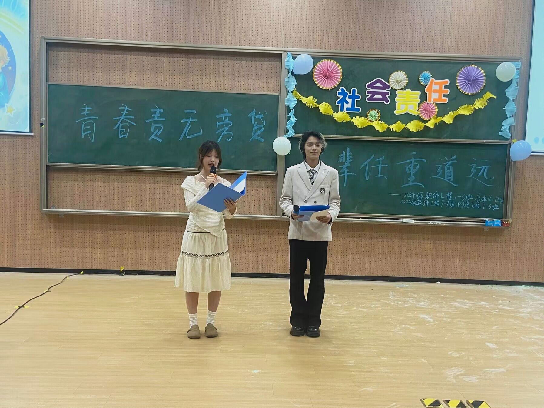 为增强当代大学生的社会责任意识,2024级软件工程1-3班、高本16-18班与2022级软件工程7-9班、网络工程1-3班于5月26日在贤者楼328阶梯教室举办了“青春‘责’无旁贷,吾辈‘任’重道远”主题年级会。本次活动通过多元创新的形式,让社会责任这一宏大主题变得可触可感,引导青春力量与时代同频共振。