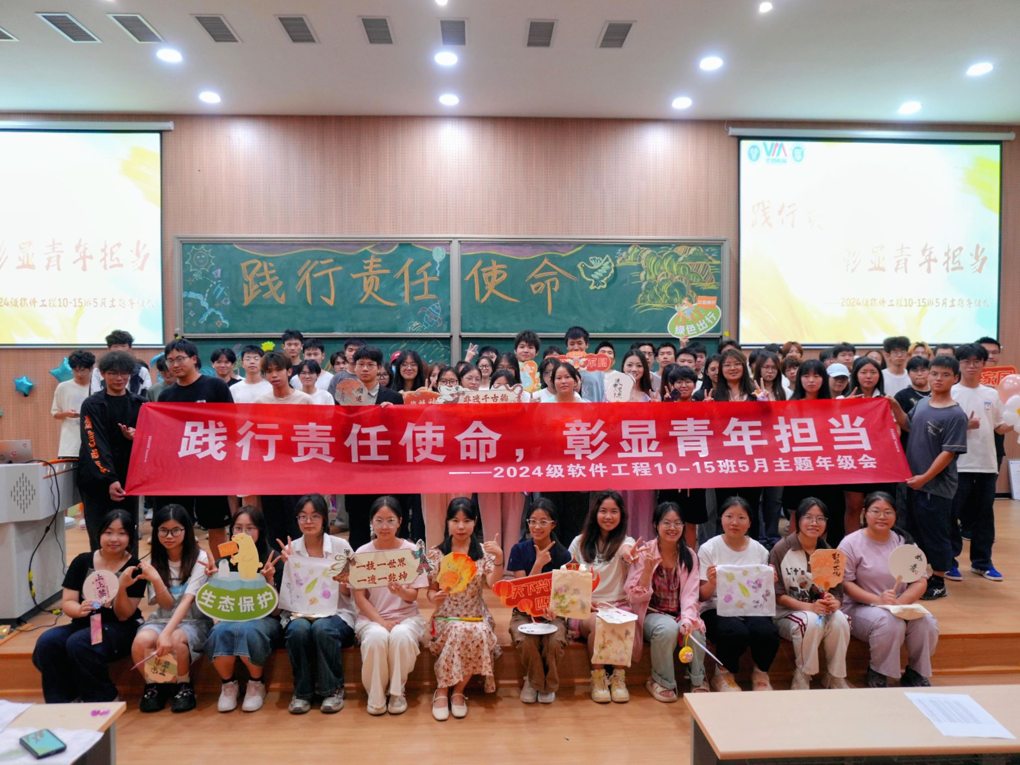 2025年5月23日下午15:30,信息安全学院2024级软件工程10-15班在贤者楼328阶梯教室举办了一场以“践行责任使命,彰显青年担当”为主题的年级会。本次年级会通过历史回溯、知识竞答、文化体验多维联动的方式对民族精神、环境保护、非遗传承这三个社会责任进行了深入探讨。为同学们搭建起感悟责任、践行担当的沉浸式平台,引发了同学们对社会责任的深入思考。