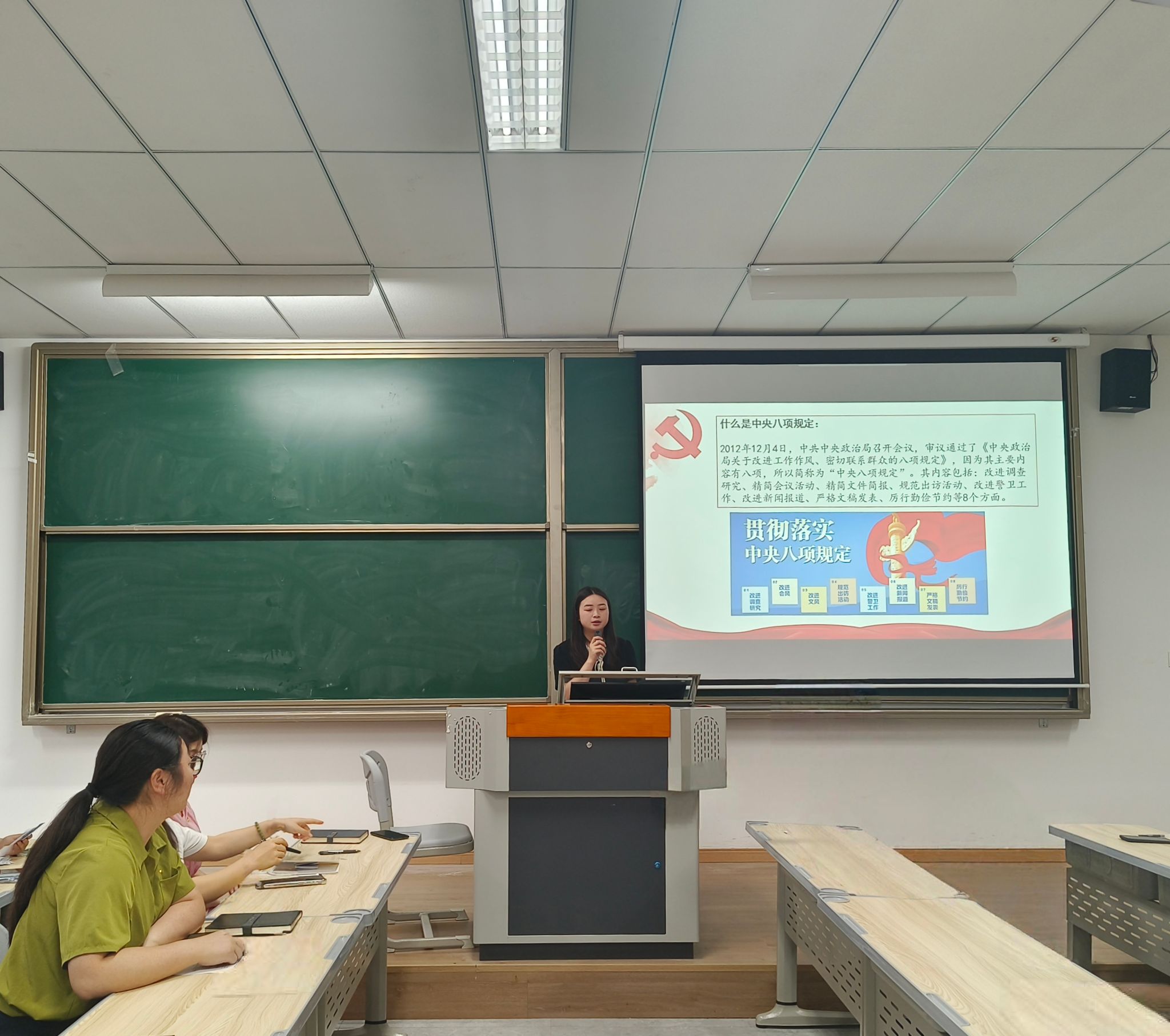 在中央八项规定精神专题学习环节,支部组织委员结合案例,对中央八项规定精神的具体内容、重要意义及实践要求进行了深入解读。通过学习,党员们进一步增强了纪律意识和规矩意识,表示要严格贯彻落实中央八项规定精神,持之以恒改进作风,以良好的党风政风带动学风校风,为学院的建设和发展贡献力量。