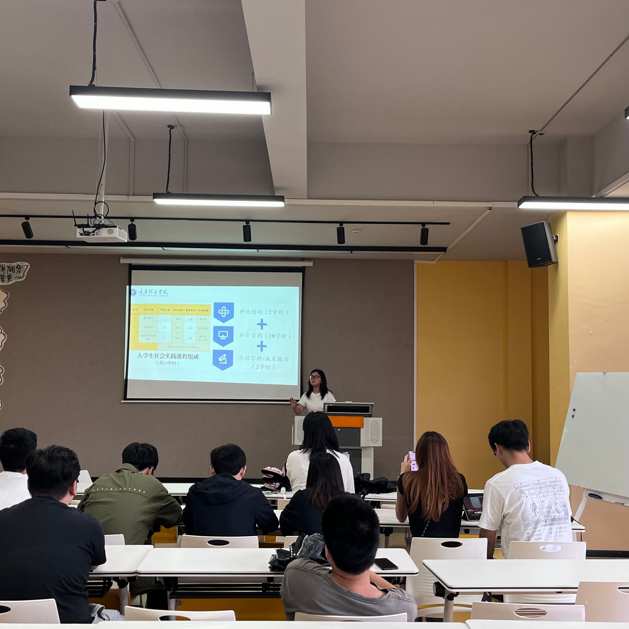 为深入贯彻落实学校关于学生全员社会实践的部署要求,扎实推进2024-2025学年社会实践工作,5月28日中午12:00,大健康管理学院姜晴秋老师在瀛溪书院语者演讲培训室,面向2024级信息安全专升本1班、2班全体33名同学,成功举办了社会实践报告填写解读会。