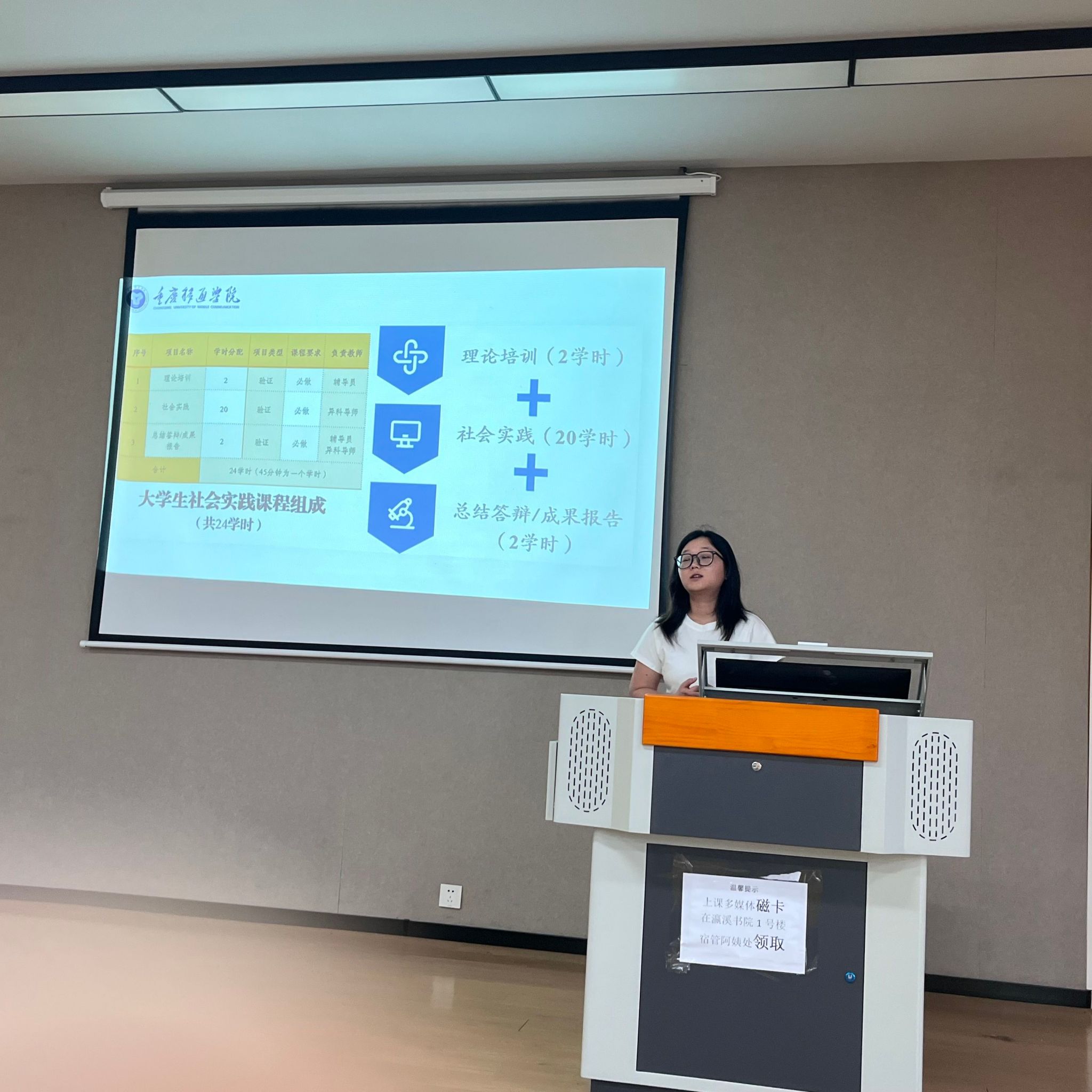本次会议聚焦学校《关于组织开展2024-2025学年学生全员社会实践活动的通知》核心精神,旨在帮助新生明确实践要求、规范报告撰写、确保实践实效。姜晴秋老师结合文件规定,详细解读了社会实践的意义、形式(包括岗位体验、志愿服务、社会调研等九大类型)、课程要求以及实践档案填写的具体规范。