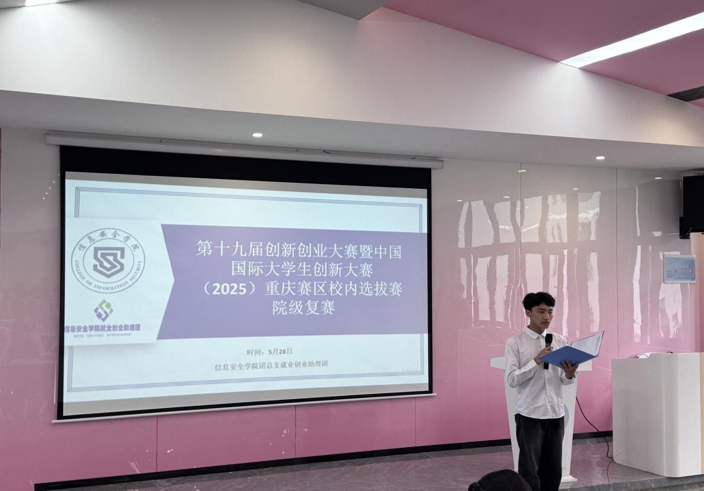 为强效激发学生创新潜能,全方位提升创新能力,培养创新型人才。信息安全学院就业创业助理团于2025年5月28日16:00-18:00丁山书院·天蝎座功能室开展第十九届创新创业大赛暨中国国际大学生创新大赛重庆赛区校内选拔赛院级复赛。此次活动特别邀请了袁君、向春红、谭小寒、易晓翠、陈佳、焦梦玲等六位老师莅临指导,由郑雨晨同学主持。