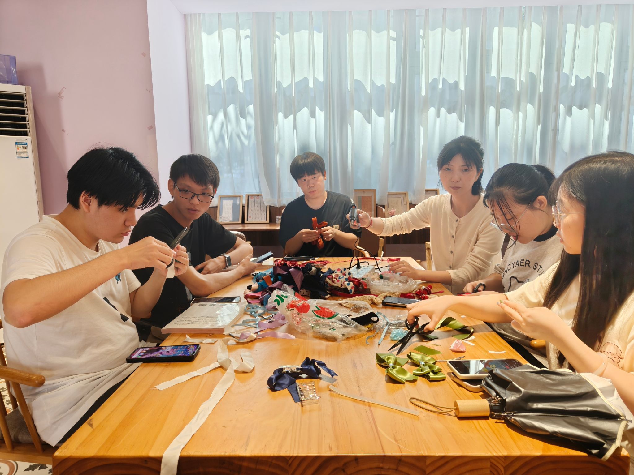 活动伊始,彭老师向同学们详细介绍了蝴蝶结的制作方法和技巧,并进行了现场示范。从丝带的折叠到打结、固定,每一个步骤老师都讲解得十分细致,同学们认真聆听。