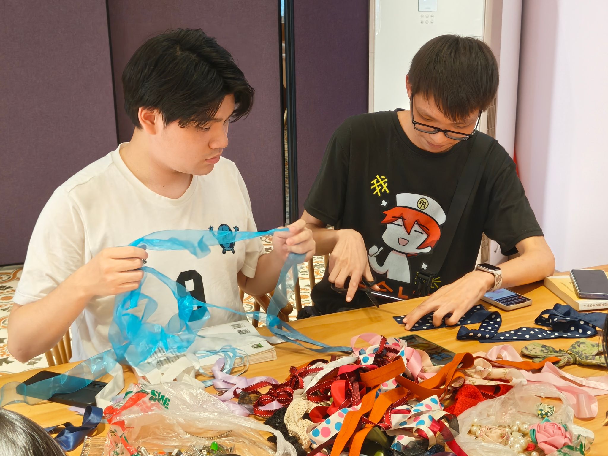 一场别开生面的手工蝴蝶结制作活动让创意与巧思碰撞,同学们通过折叠、打结、装饰等环节,将五彩丝带化作精美艺术品,在动手实践中感受手工魅力,激发无限想象力。2025年5月29日上午10:00,信息安全学院异科导师彭丽珺老师在观云书院的芒种华文书吧,精心策划并成功举办手工蝴蝶结制作活动,为同学们带来了一场知识与创意交织的盛宴。