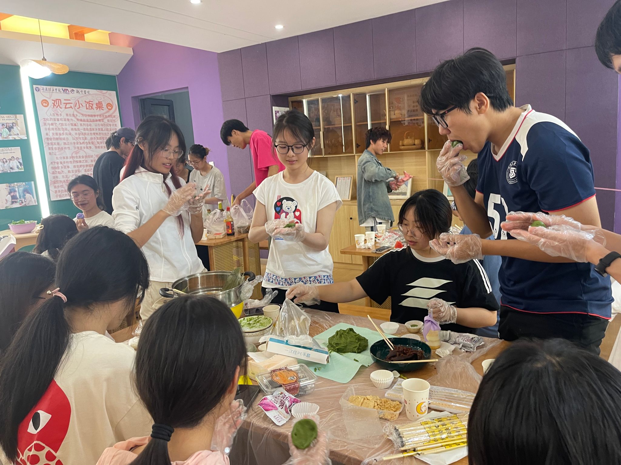 活动最后,师生们围坐在一起,品尝着刚刚出锅的饺子和青团,分享着制作心得。"夜晚的谷雨厨房别有一番风味,这样的端午体验很难忘。"活动负责人尤玲莉老师说道。不少同学表示,这是他们第一次在晚上参加这样的传统文化活动,感觉既新鲜又有意义。