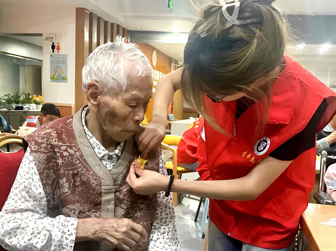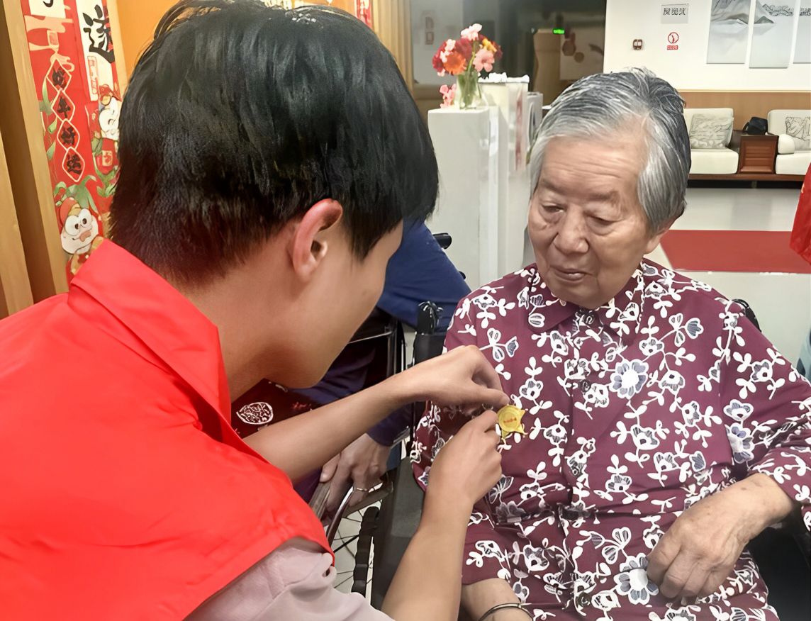 在活动的总结环节,主持人对本次活动进行了全面总结,鼓励老人们用心感受每一个平凡日子里的小确幸,释怀过往,不惧未来,以乐观豁达之心开开心心过好每一天。这番话语如同春风化雨,滋润着老人们的心田,让他们在未来的日子里更加珍惜生活,积极面对人生。最后,志愿者们为老人颁发了“家族传承使者”纪念徽章,并与老人合影留念。在温馨的音乐声中,老人们佩戴着徽章,脸上洋溢着幸福的笑容,这一刻将被永久定格,成为他们生命中一段珍贵而美好的回忆。