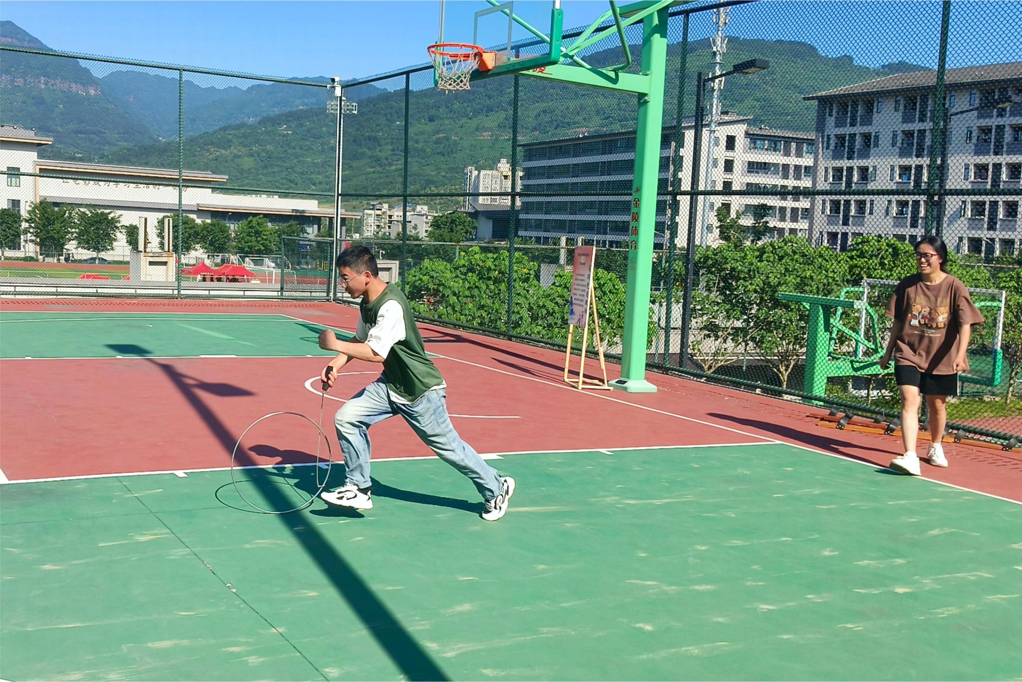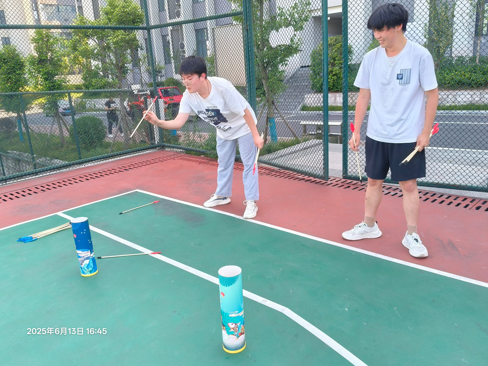 运动会以极具民族特色的传统体育项目为核心,让历史悠久的文化符号在现代校园“活”起来。投壶区再现古代宴饮雅趣,选手们手持竹箭,目光专注地投向一米外的铜壶,每一次精准入壶都引发阵阵喝彩;背篓绣球项目中,抛球手站在指定区域抛出五彩绣球,接球手在划定范围内轻盈跑动,以“运送绣球不投掷”的规则还原少数民族婚恋习俗中的浪漫场景。