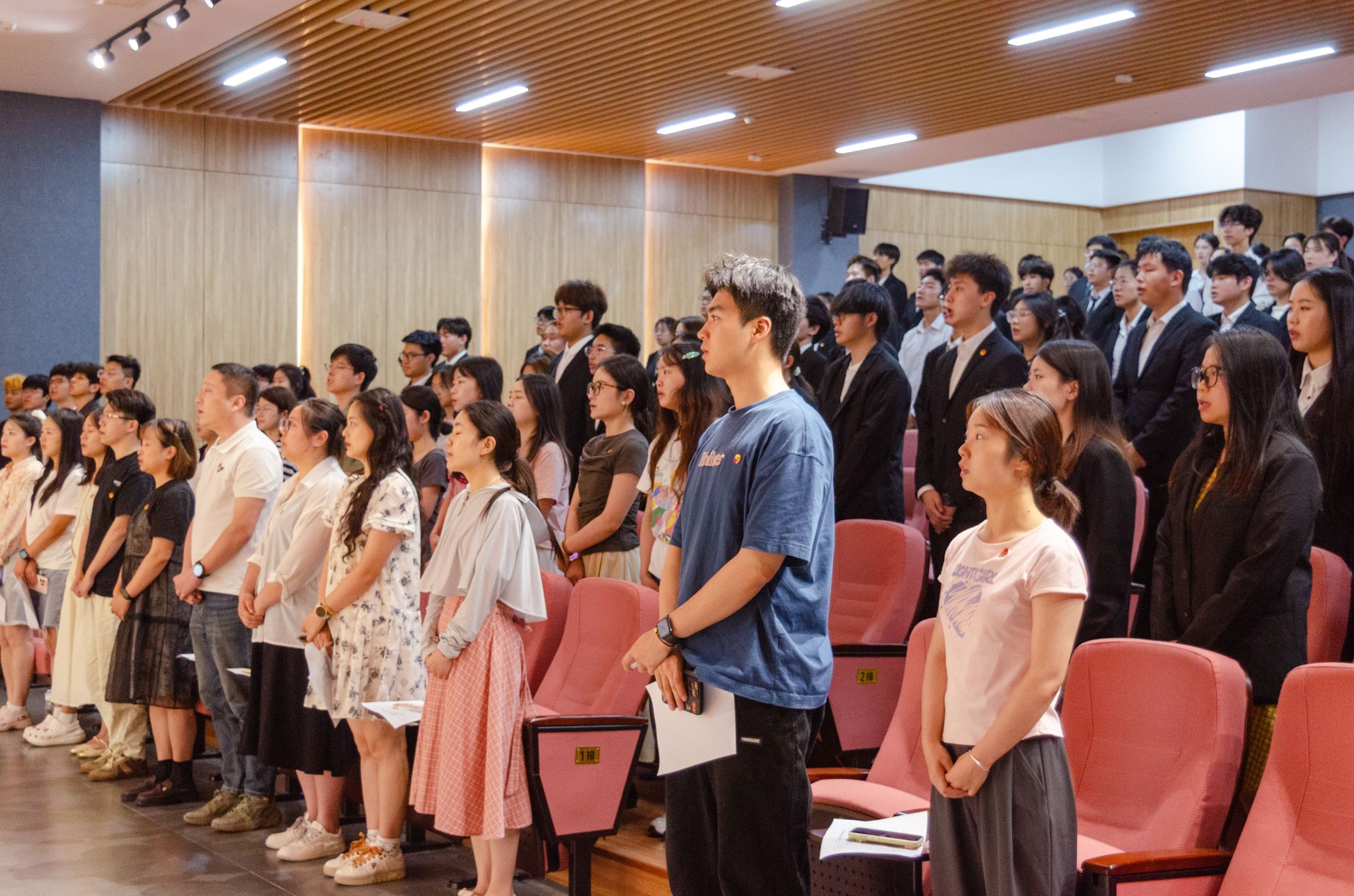 大会在共青团团歌中启幕。全体师生肃立齐唱,铿锵旋律诠释信安青年共担使命的赤忱初心。随后各部门以精炼总结展学年担当。