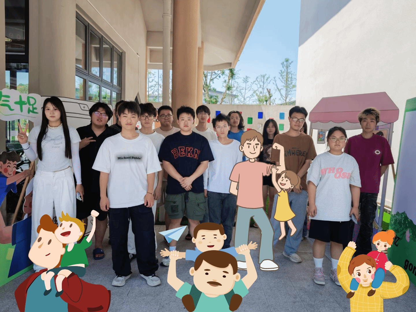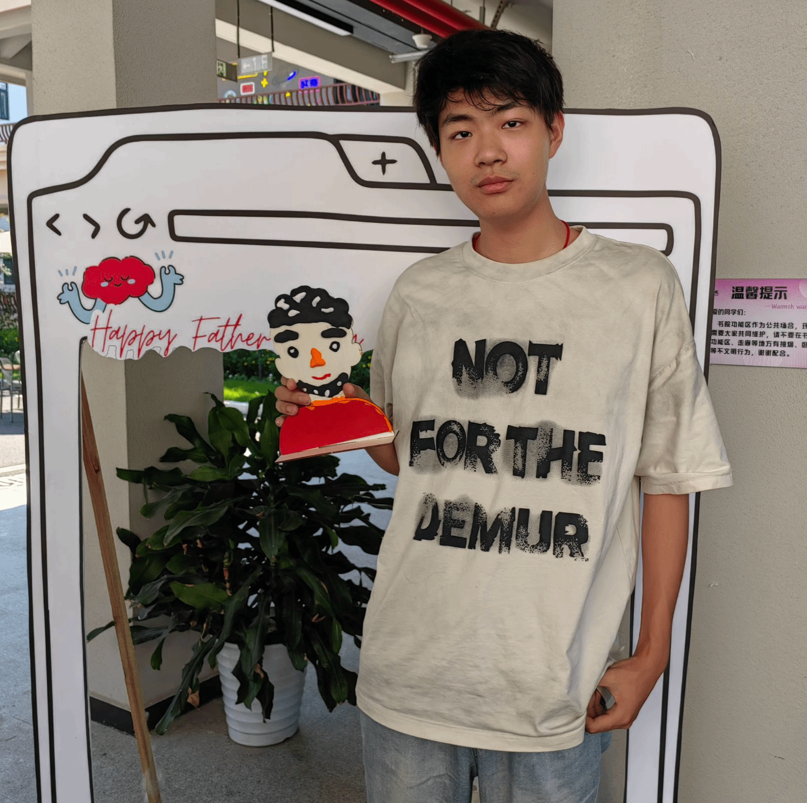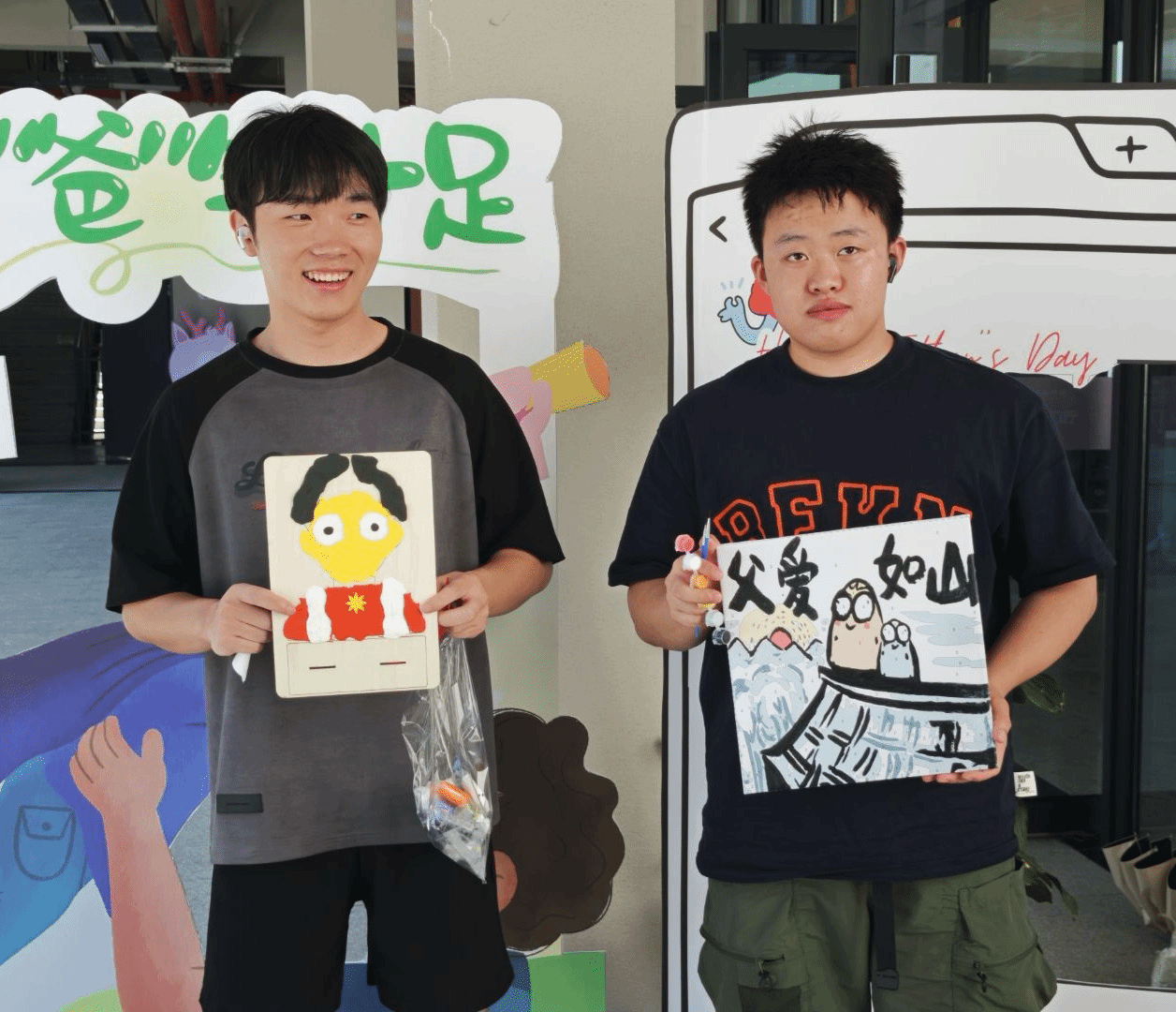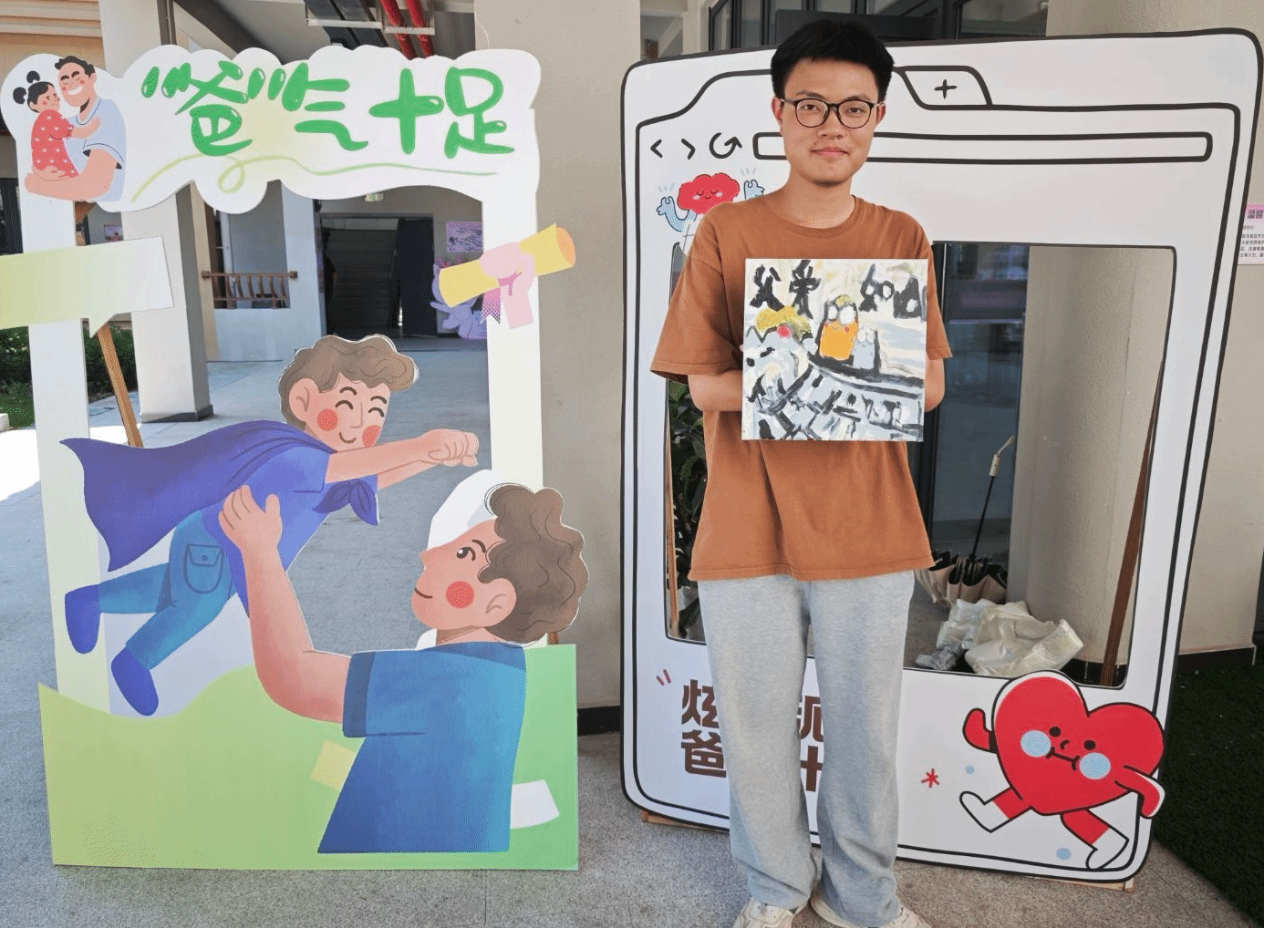 最热闹的当属“‘爸’气留影站”。这里设置了多个创意拍照点:有“我的超人老爸”手持相框,有“老爸最帅”的立体背景墙,还有专门展示黏土作品的展示台。同学们或是举着自己的作品,或是模仿父亲经典表情,留下了一张张充满温情的照片。