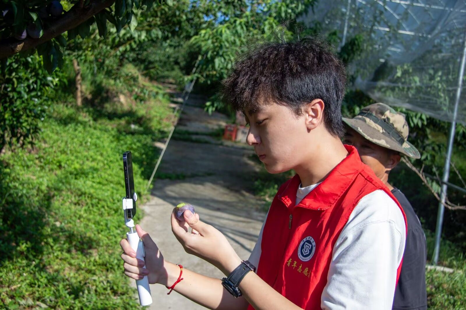 2025年7月5日,盛夏时节,瓜果飘香。信安学子化身“带货主播”,架起手机,连接网络,将舒伯伯的果园“搬”上云端,为特色农产品打开了销路,以实际行动赋能乡村振兴。