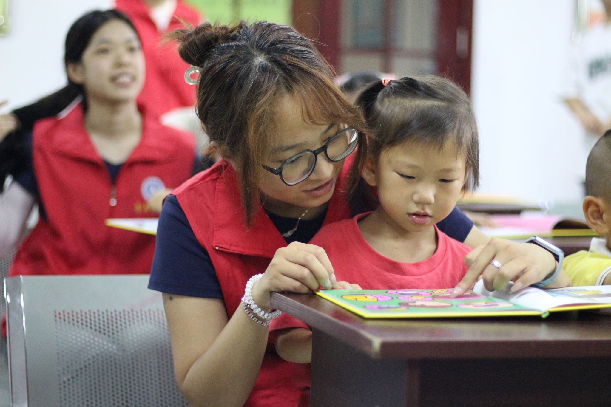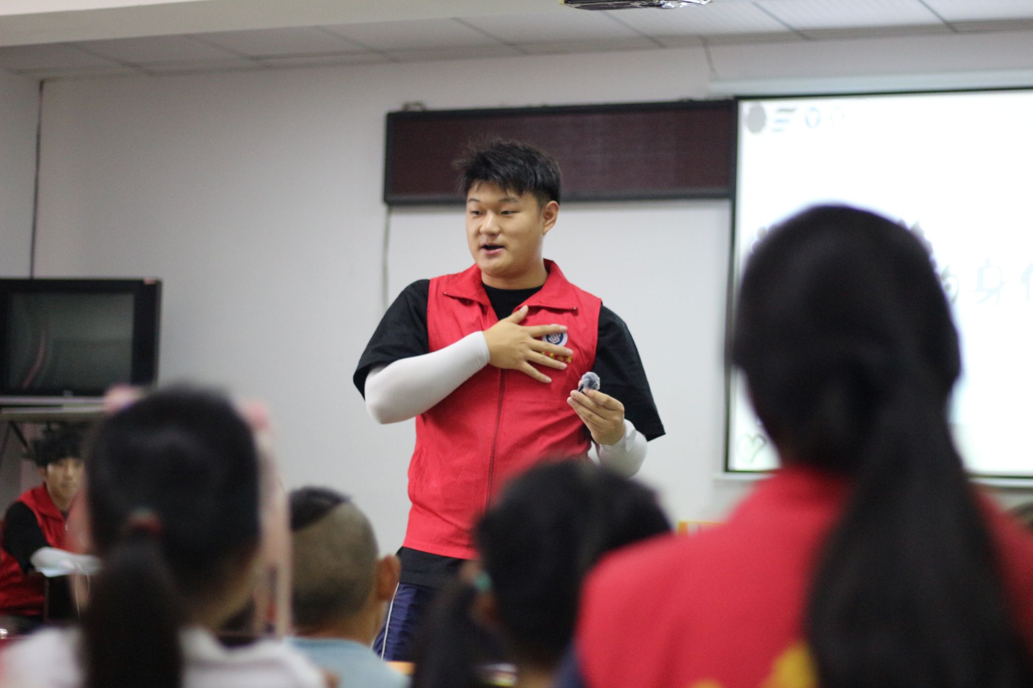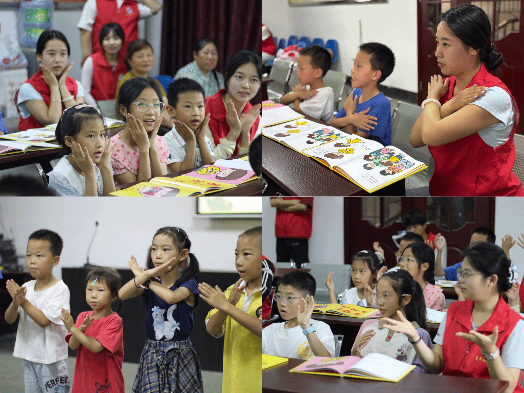 为直观让小朋友们学会识别危险、建立防护反应,志愿者采用了童趣歌谣和手势动作进行教学。通过“不行不行,手部警报”等互动指令,将自我保护知识融入其中,让生命教育从认知绘本的“知”,延伸到歌谣传唱的“行”,贯彻孩子们成长的每一步 。