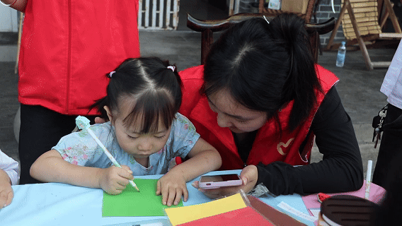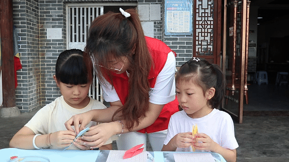 折纸的时候孩子们格外投入,小脸上满是认真与欢喜。志愿者们手把手地教孩子们折出千纸鹤、小船等造型,遇到困惑时,总会得到温柔细致的解答。每一次耐心的解惑,每一次成功的折叠,不仅锻炼着灵巧的双手,更在潜移默化中磨砺着心性,培育着持之以恒的品格。