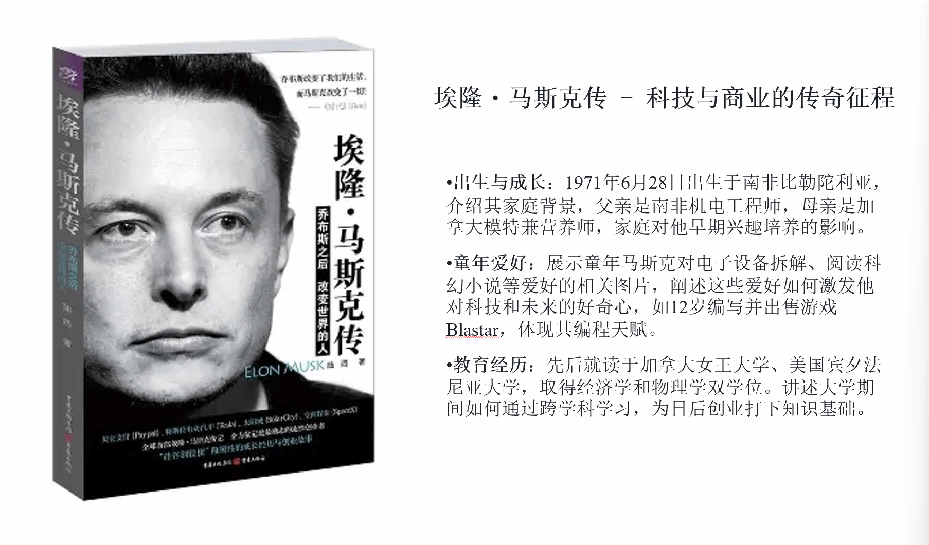 活动以埃隆·马斯克的人生经历为主线,深入解读了他如何从一个对宇宙充满好奇的少年,一步步成长为横跨电动汽车、太空探索等多个领域的科技巨头。
