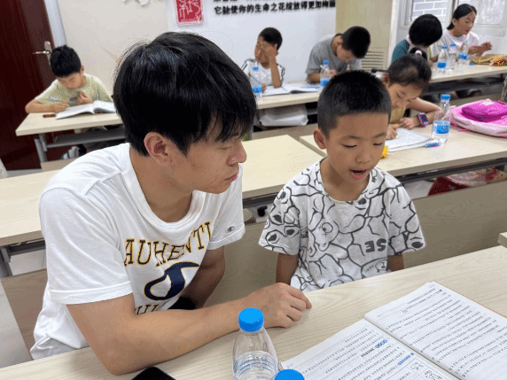 曾巾栖同学在璧山区“‘璧’趣假期・快乐童年”暑期公益托管营开展为期5周的志愿服务。作为志愿者,她为23名儿童提供全周期陪伴,通过“一对一”辅导攻克学业难点,组织扎染制作、古诗词课堂、安全教育等特色活动激发孩子们的创造力与学习热情。“教育是点燃火焰的过程”,这段经历让她深谙耐心与创新的育人之道,更以青春奉献诠释了新时代大学生的社会担当,实践照片里的每帧欢笑都成为公益路上的温暖注脚。