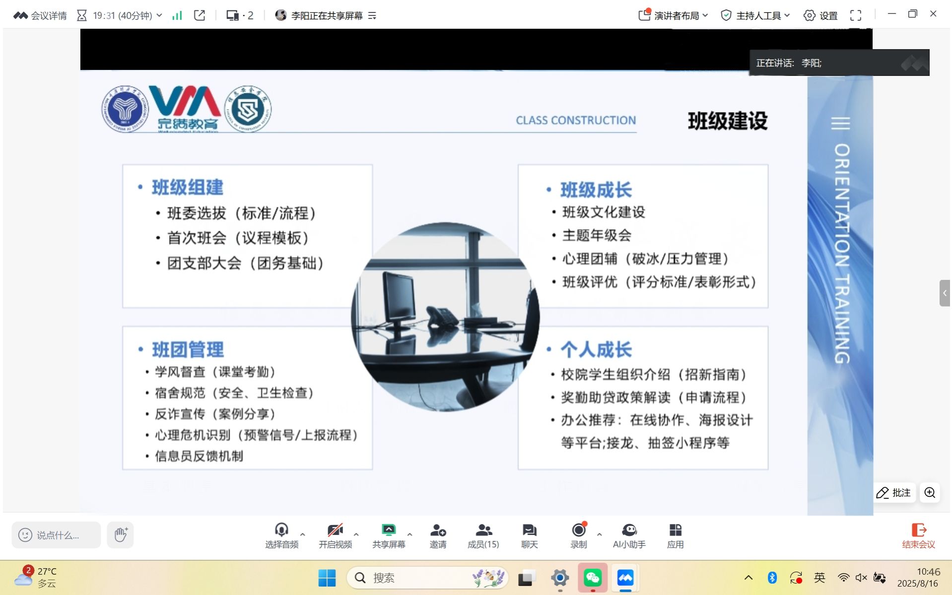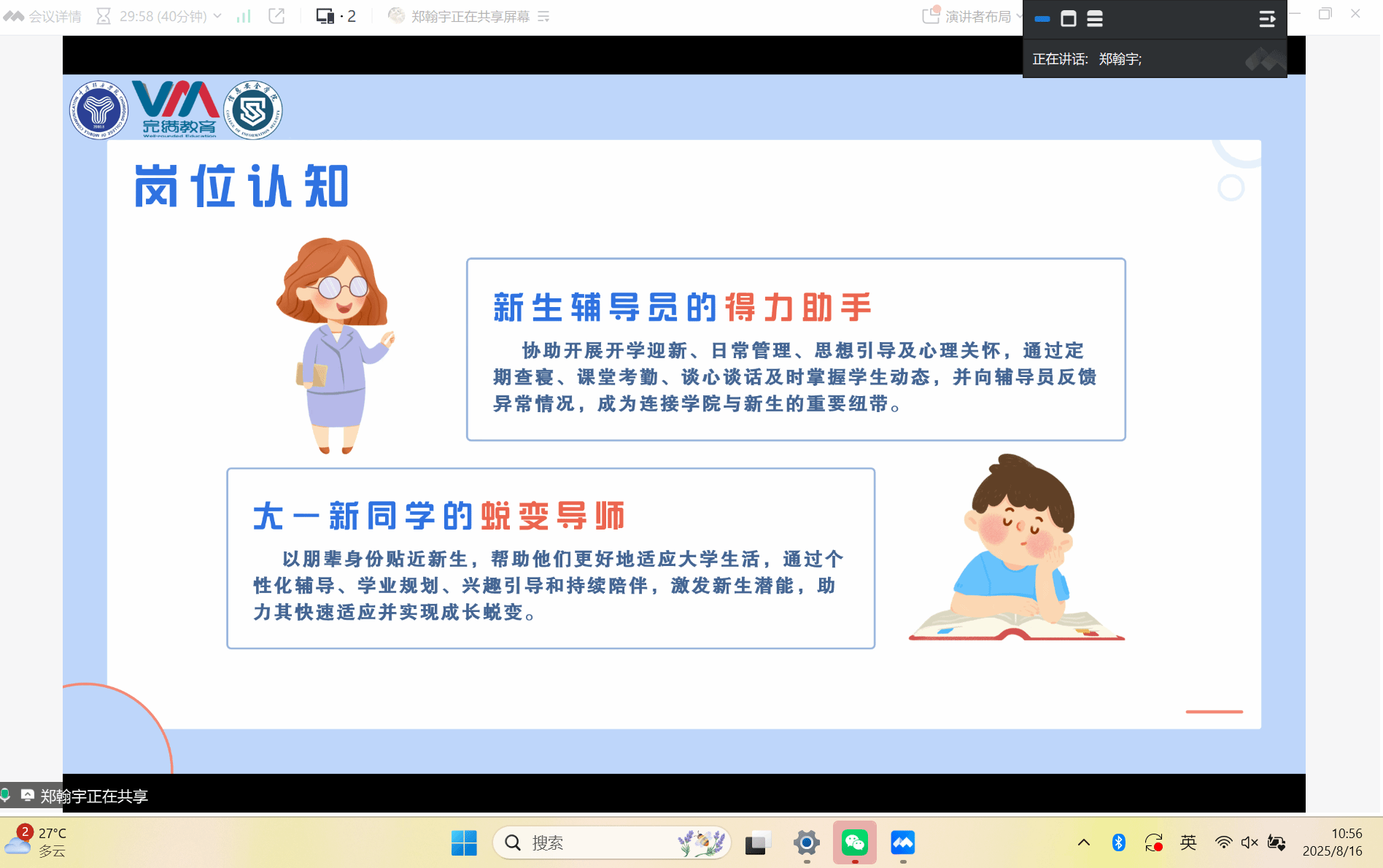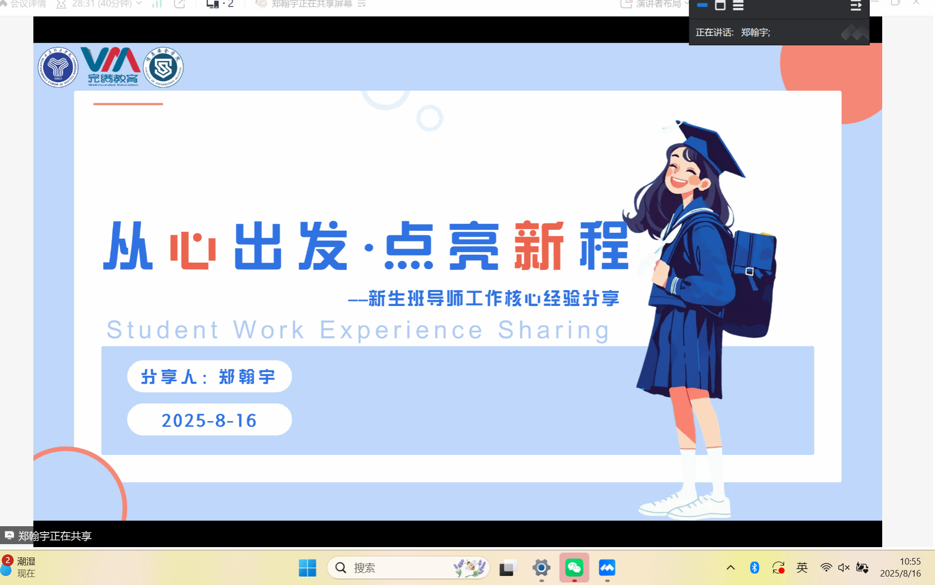 此次线上培训交流会的召开,不仅为新生班导师明晰了工作方向与标准,更通过经验分享搭建了学习交流桥梁,为后续推动2025级新生成长与发展奠定了基础,也为培育与展现信安学子们的良好风貌做好准备。