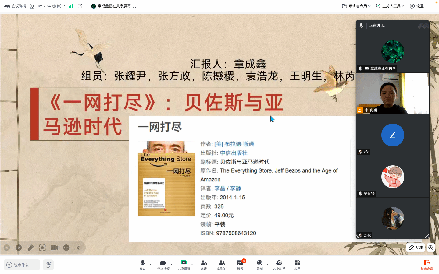 活动尾声,冉老师总结指出:“大咖阅读的真正目的不仅在于理解一个人或一家企业的故事,更在于从中提炼出能够指导我们学习与实践的智慧。”她鼓励同学们将阅读收获与专业学习相结合,无论未来从事何种领域,对创新逻辑的洞察、对长期价值的坚守以及对伦理风险的审慎,都将成为不可或缺的核心素养。本次阅读分享会在热烈的云端交流中圆满结束。同学们纷纷表示受益匪浅,不仅增强了对现代商业运作的认知,也激发了对创新创业的进一步思考。
