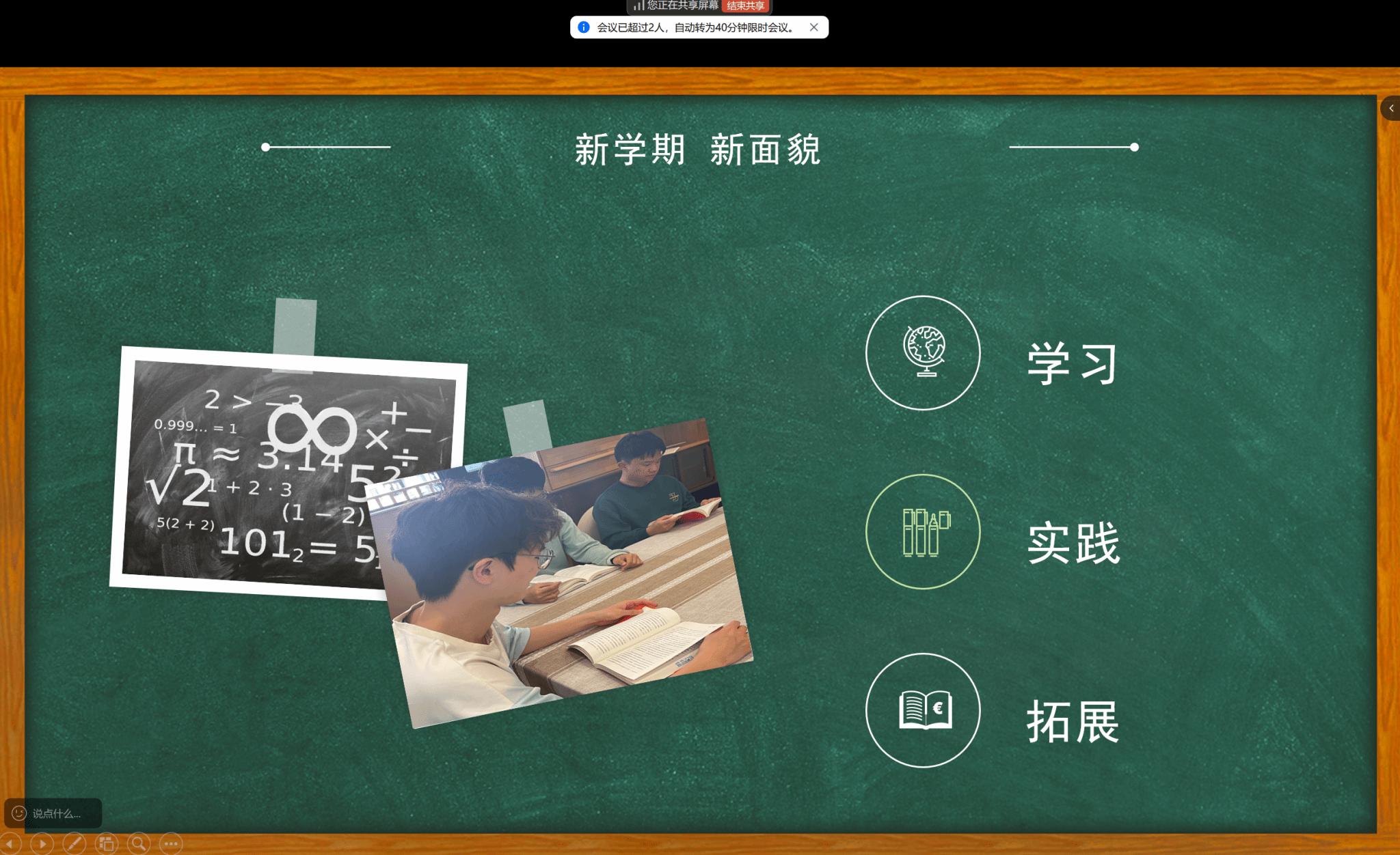 在“暑期分享”环节,同学们用展示并分享了丰富多样的假期成果,有做志愿者为老年人服务的,也有社会实习学习AI领域相关前沿知识的。随后的”新学期计划”讨论中,同学们表示要将阅读收获转化为行动目标,在知行合一中成长。