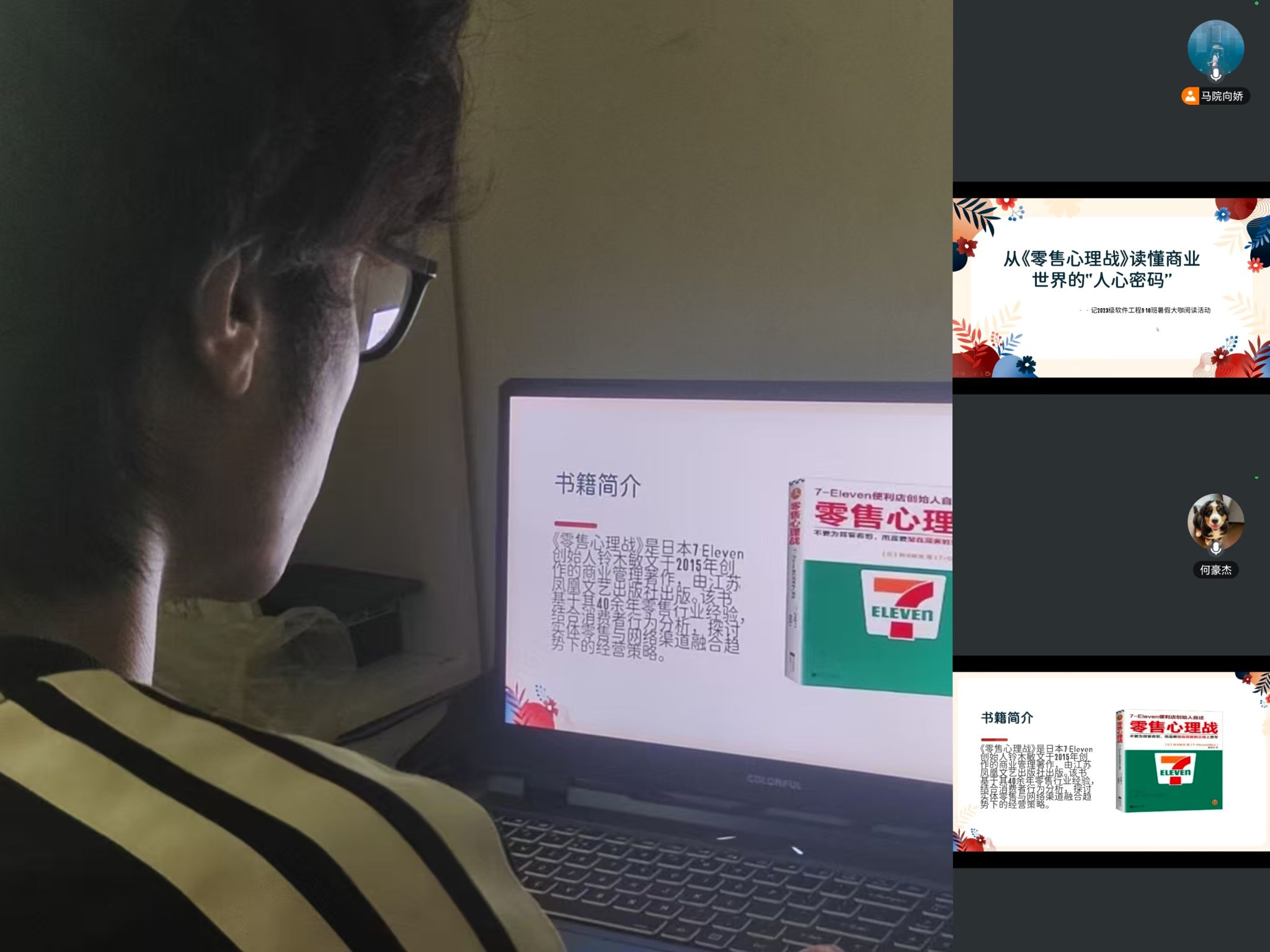 暑假期间,为培养学生的商业思维,提升对市场规律的认知,2025年8月23日,异科导师向娇通过线上平台,带领2023级软件工程9-10班学生共读商业经典《零售心理战》,在知识的海洋里开启一场别开生面的探索之旅。