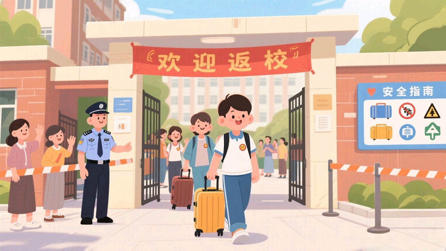 行程健康:若返校路途较远,备好口罩、消毒湿巾等防护用品,人群密集处做好个人防护;出现发热、咳嗽等不适,及时联系乘务员或到校后报告校医,不隐瞒身体状况。