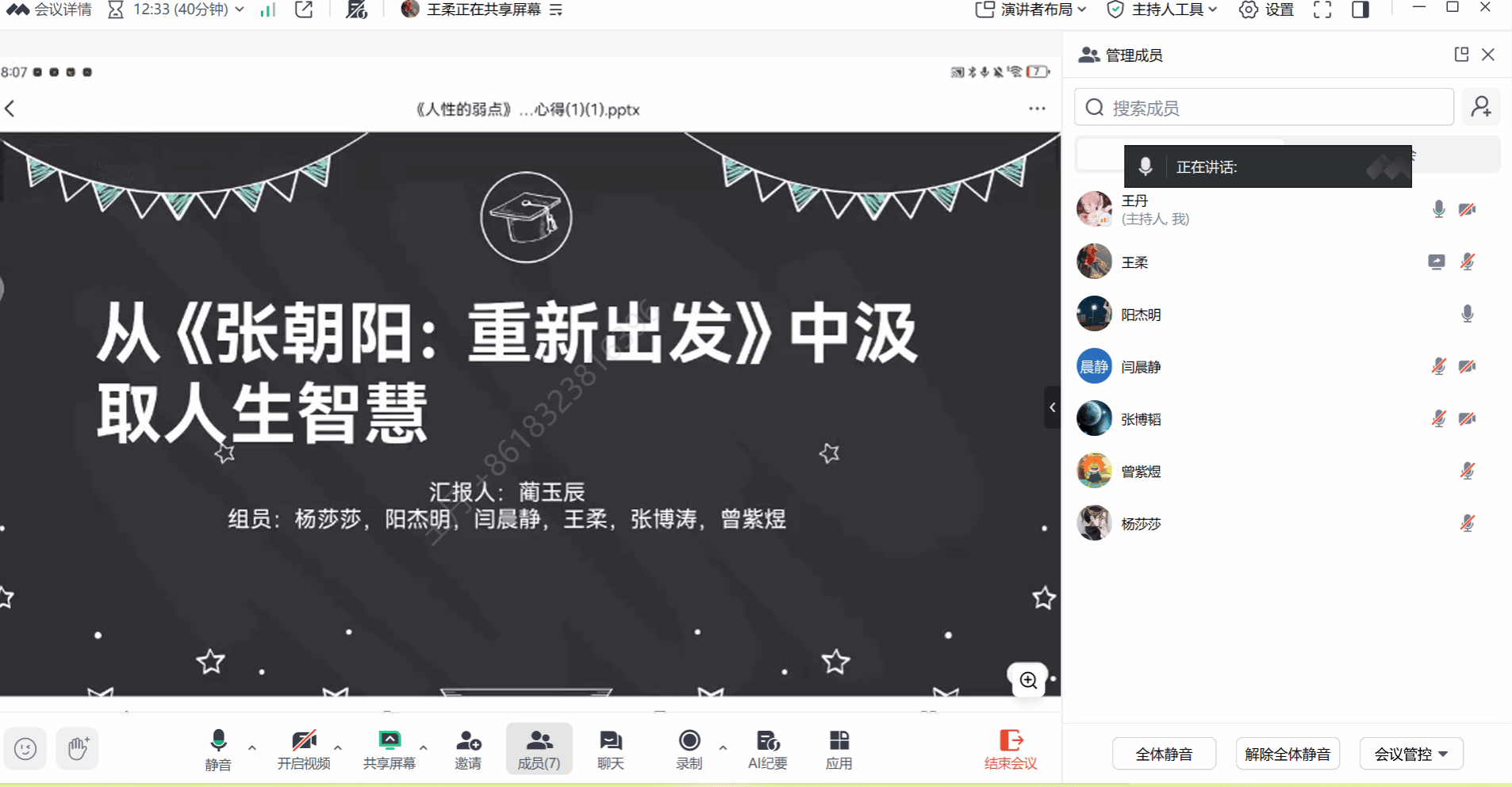 暑假期间,王丹老师组织开展了线上大咖阅读分享会。参加分享活动的有阳杰明、张博韬、闫晨静、王柔、杨莎莎、曾紫煜等6位同学。本次活动由张博韬同学担任主分享人,他为大家带来了《张朝阳:重新出发》的精彩解读。