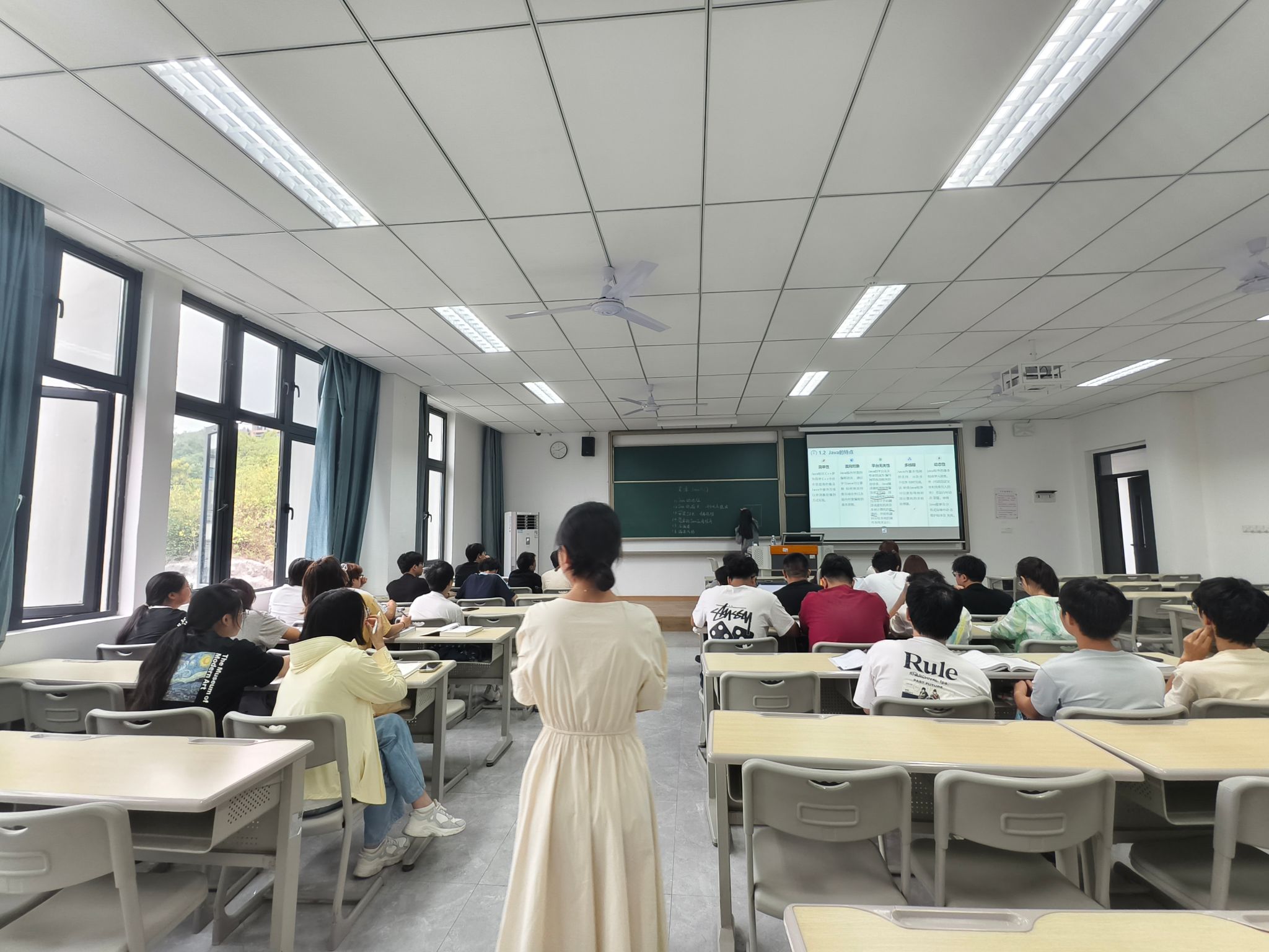 查课过程中,课堂秩序总体良好,教师备课充分、授课认真,学生多数精神饱满、专注听讲。大二学生对课程知识的理解更为深入,能够结合已学内容提出问题,课堂互动具有一定的思考性;大三学生则目标清晰,在专业课学习中常将知识与行业动态、未来规划相联系,课堂讨论颇具深度。课间,辅导员来到教室与授课教师交流。教师提到部分学生对课程难点的掌握存在差异,辅导员建议可适当增加实际案例的讲解,既有助于学生理解知识,也能为大三学生的实习实践提供更好的衔接。