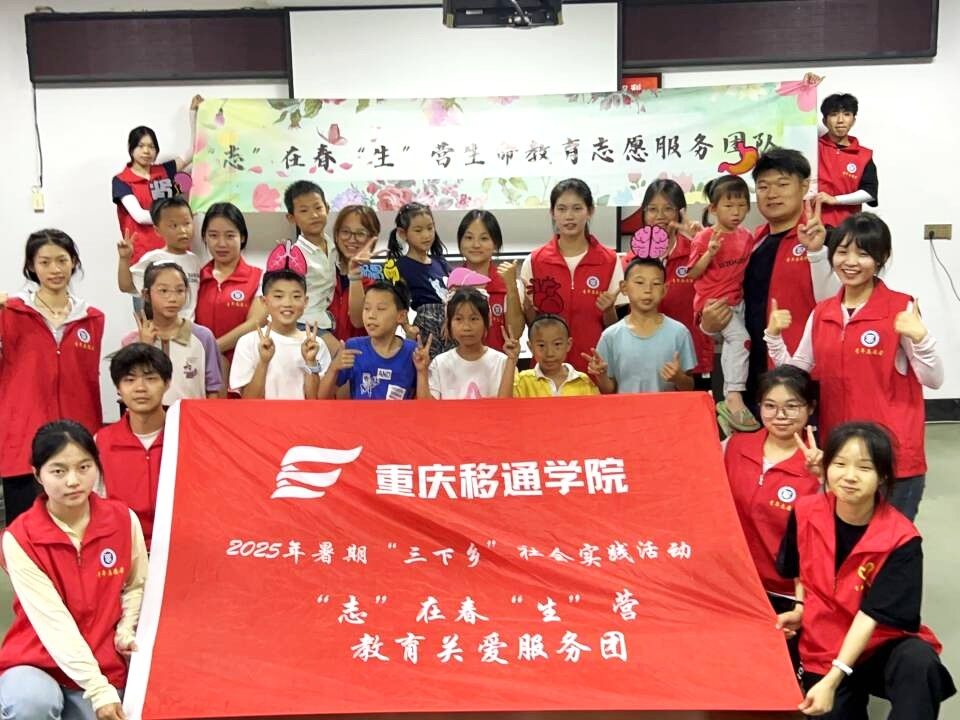 为深入推进乡村振兴战略,践行青年志愿服务精神,“志”在“春”生营教育关爱服务团也将“生命教育”的步伐踏出。2025年7月3日至8日,17名学生志愿者与2名指导教师以生命教育为核心赴重庆市永川区陈食街道菜茵岩村及周边区域开展为期7天的三下乡社会实践活动。