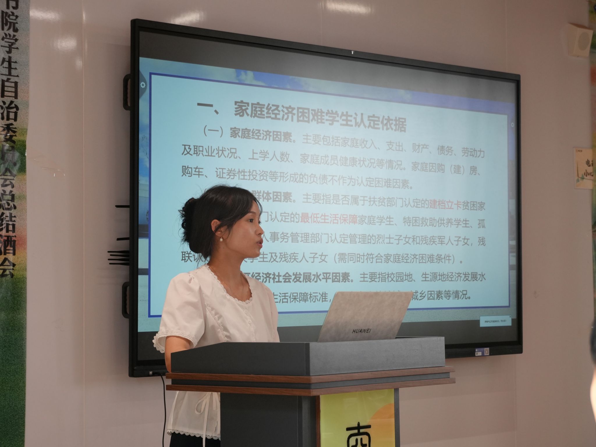 资助宣讲环节,辅导员则聚焦家庭经济困难学生认定政策,逐项解读申请条件、流程及认定材料要求,确保政策精准落实,帮助更多家庭经济困难的学生顺利完成学业。同时鼓励同学们积极参与学科竞赛,锻炼专业与实践能力,拓展发展资源。