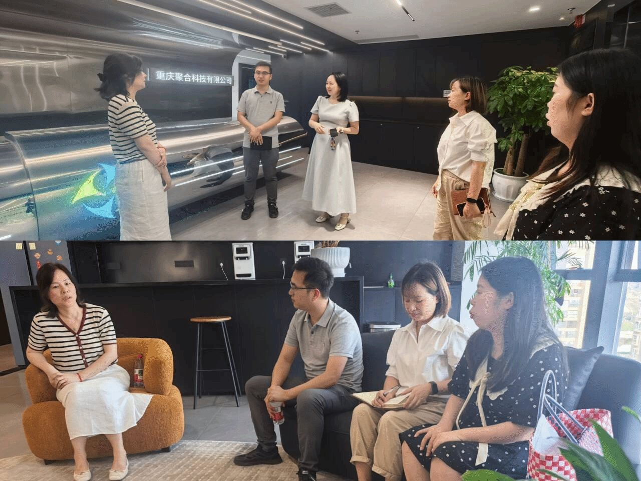 走访团队随后来到重庆聚合科技有限公司。产品部经理丁如容介绍,作为维普兄弟企业,公司深耕医疗科研管理领域,拥有45项软件著作权,通过数字化流程与AI技术优化科研项目预测与资源配置。
