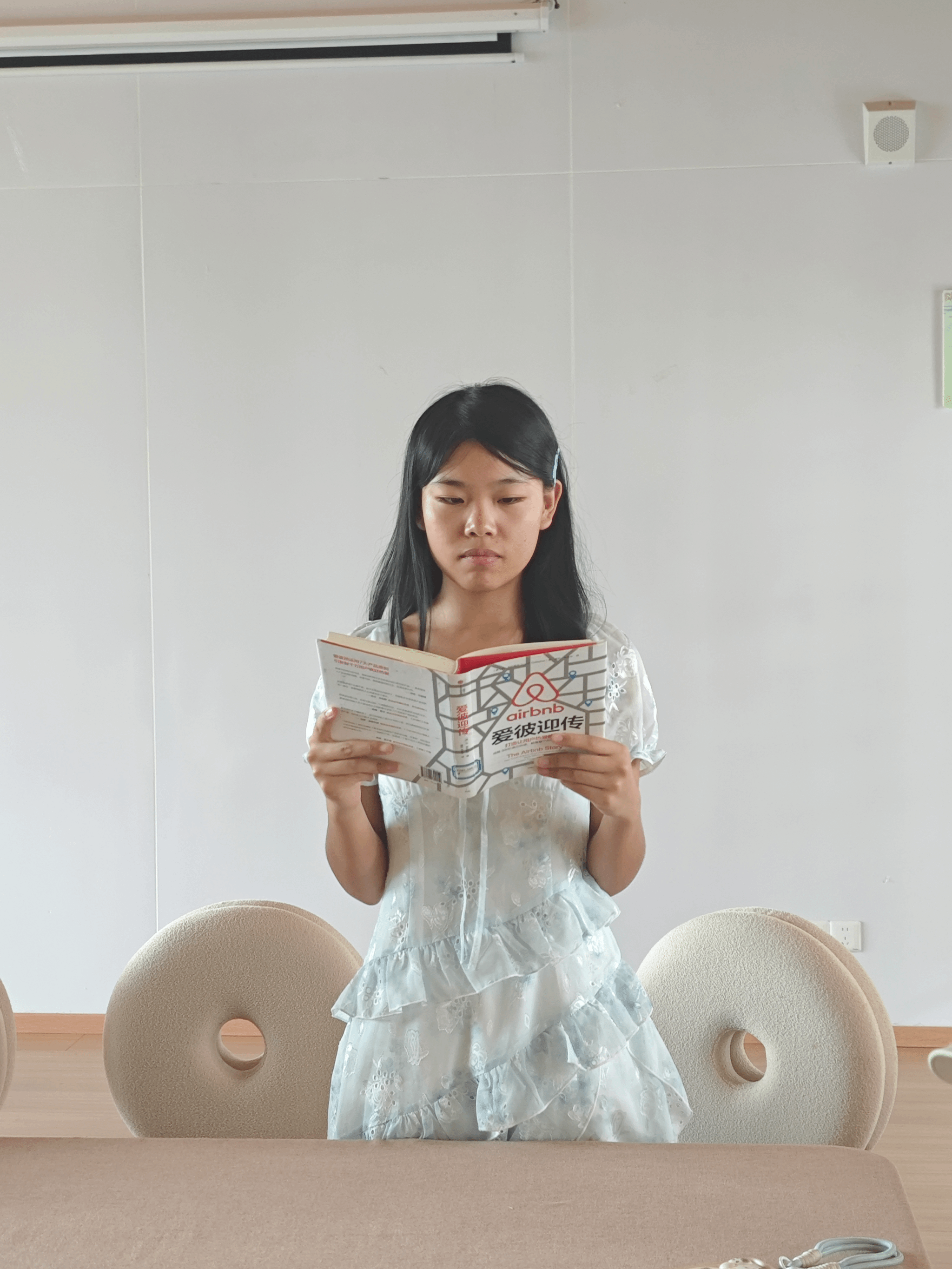 董佳怡同学接着分享了《爱彼迎传》。她通过爱彼迎创始人布莱恩·切斯基的创业故事,阐述了共享经济的核心理念——"信任创造价值"。董佳怡强调,爱彼迎的成功不仅在于商业模式的创新,更在于建立了人与人之间的信任桥梁。她特别提到,爱彼迎在疫情期间的转型策略,展现了企业的韧性和创新精神,这一案例让同学们对创新创业有了更深刻的理解。