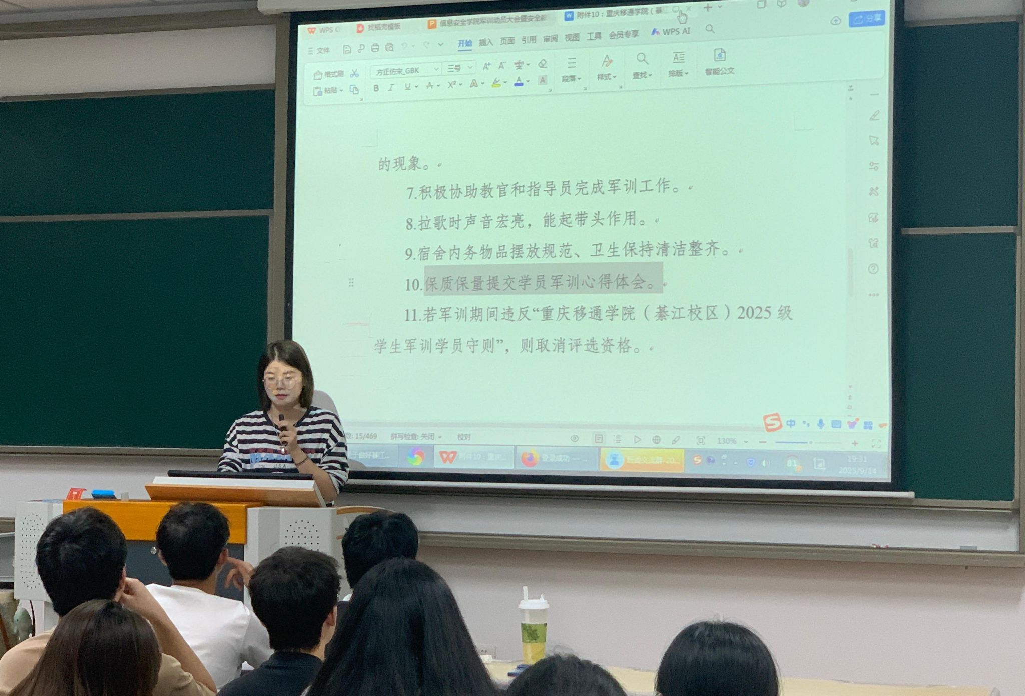 为帮助新生深刻认识军训意义,强化纪律安全意识,以饱满状态迎接大学“第一课”,2025级各辅导员于9月16日当天分别召开新生军训动员大会,所带班级新生全体参会。