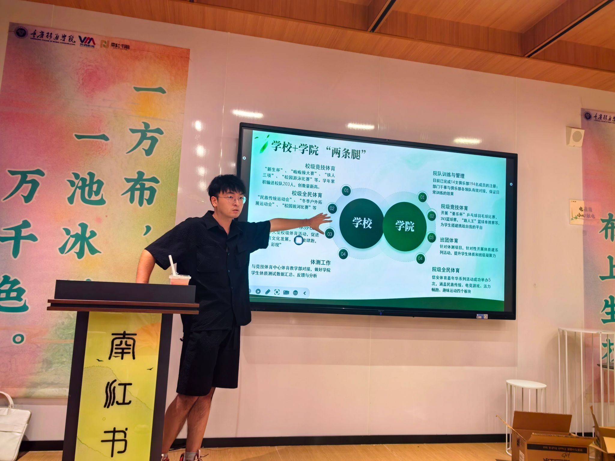 主席李汶壕结合自身经验,讲解了部门的工作体系、协作模式及体育部与其他部门的联动机制,并欢迎新成员并鼓励其积极尝试、突破自我;随后三位部长依次登场,分板块讲解各自分管领域的工作内容、职责及常见问题处理方法,助力新干事明晰工作。