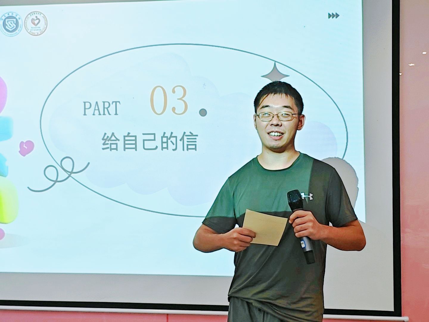 在志愿者鼓励下,同学们给“被‘心壳’包裹的自己”写信,直面自身“不完美”,让“接纳”从抽象概念变为具象的自我关怀。