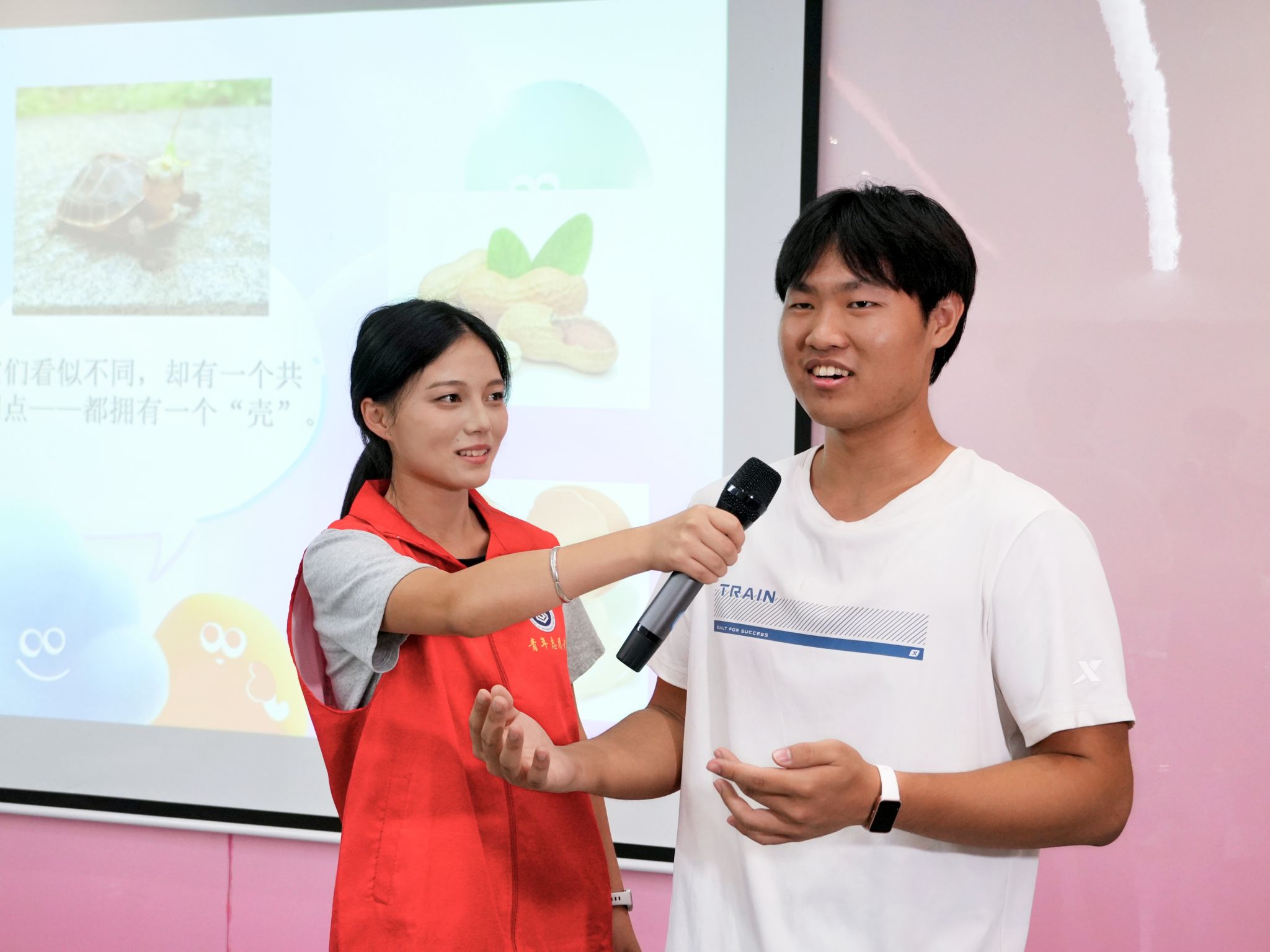志愿者展示“有壳”的事物,在参与者分组讨论达成“壳具有保护作用”的共识之后,志愿者引导他们深入理解“壳的外部”是日常展现给他人的一面,“壳的内部”则是不愿展露的内心。