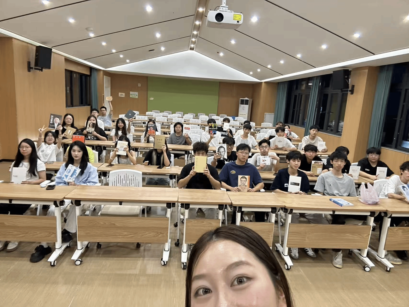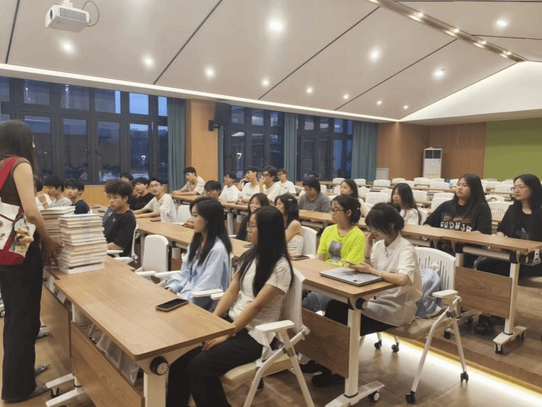 活动伊始,同学们纷纷分享自己在假期中的阅读体验与成长心得。有的同学讲述了暑期期间阅读《平凡的世界》时的感想,如何从书中的平凡人物身上汲取到面对困境的勇气与力量,在假期的学习和生活中尝试努力突破自我;有的同学在假期不断参加实践活动,体会到生活的无畏与坚强,并分享了自己在生活中如何重新审视挫折,以更坚韧的态度面对生活。随着同学们的分享逐渐深入,现场气氛愈发热烈,大家在彼此的交流中感受到了阅读的无限魅力和不同书籍带来的多元思考。