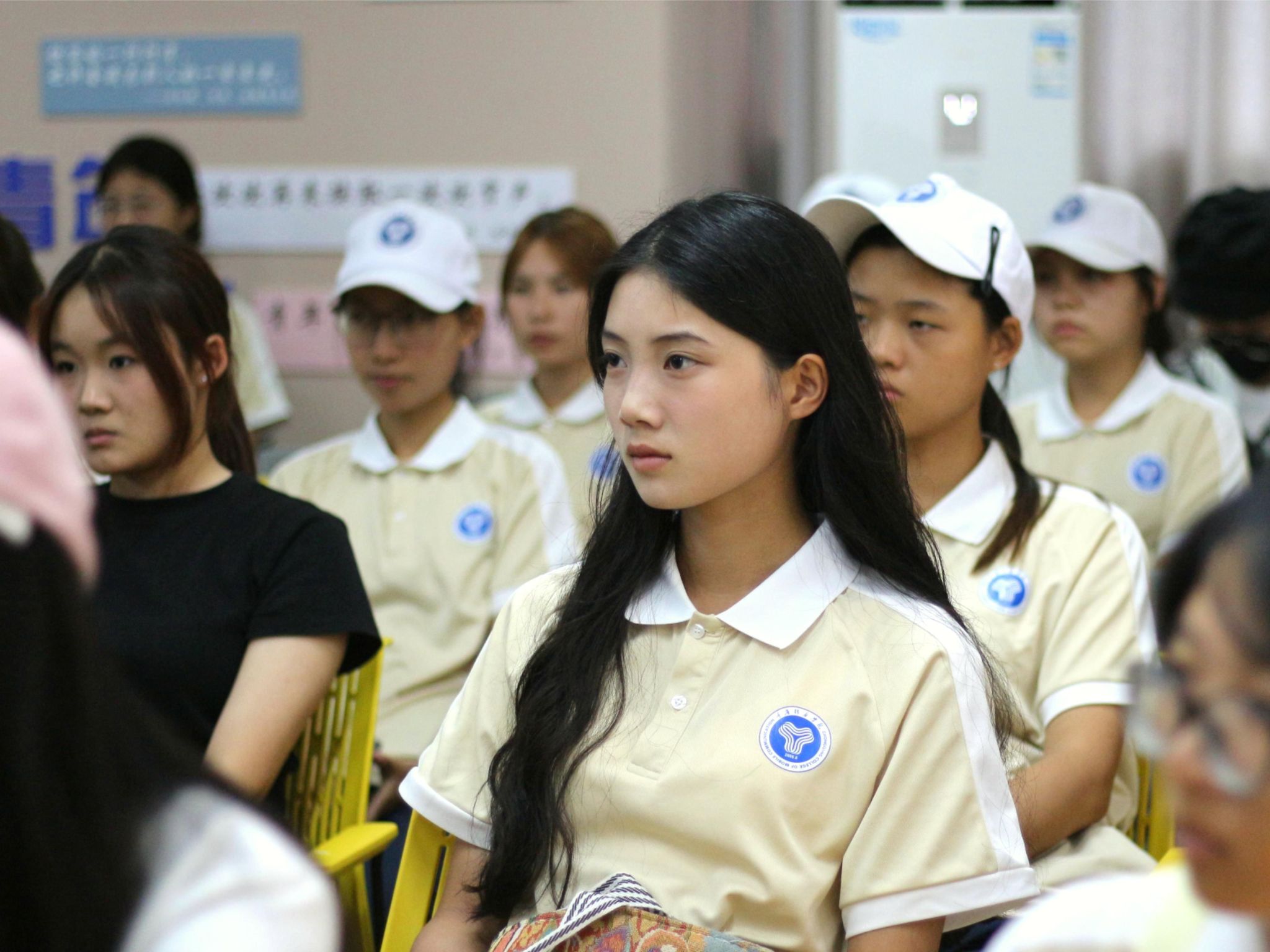 走进现场,队员们脸上洋溢着朝气,眼里充满着热忱。首先,由党总支专职副书记田海燕和体育部指导老师郭福禄轮流为队员做本次大赛的讲解;随后队员代表回顾过往赛事荣耀,展现了往届学院风采,而新赛季队伍将延续集体花球项目,并新增运动健美操、双人爵士,在多元风格碰撞中绽放新光芒。